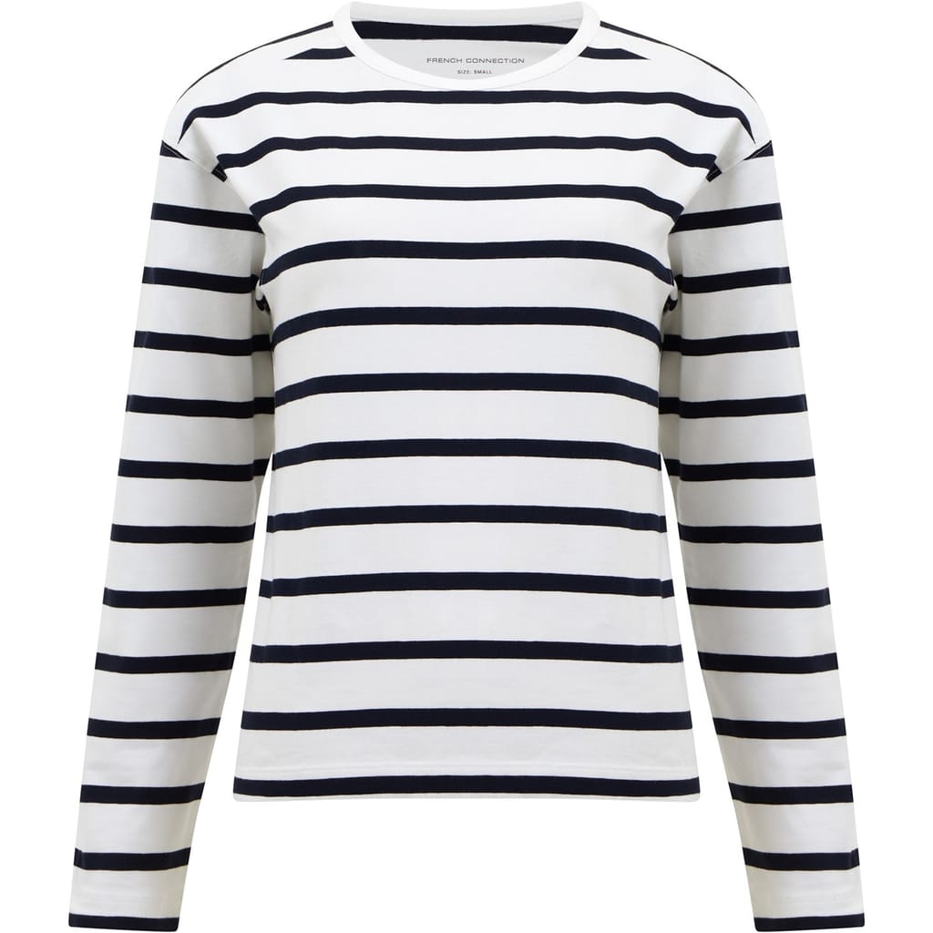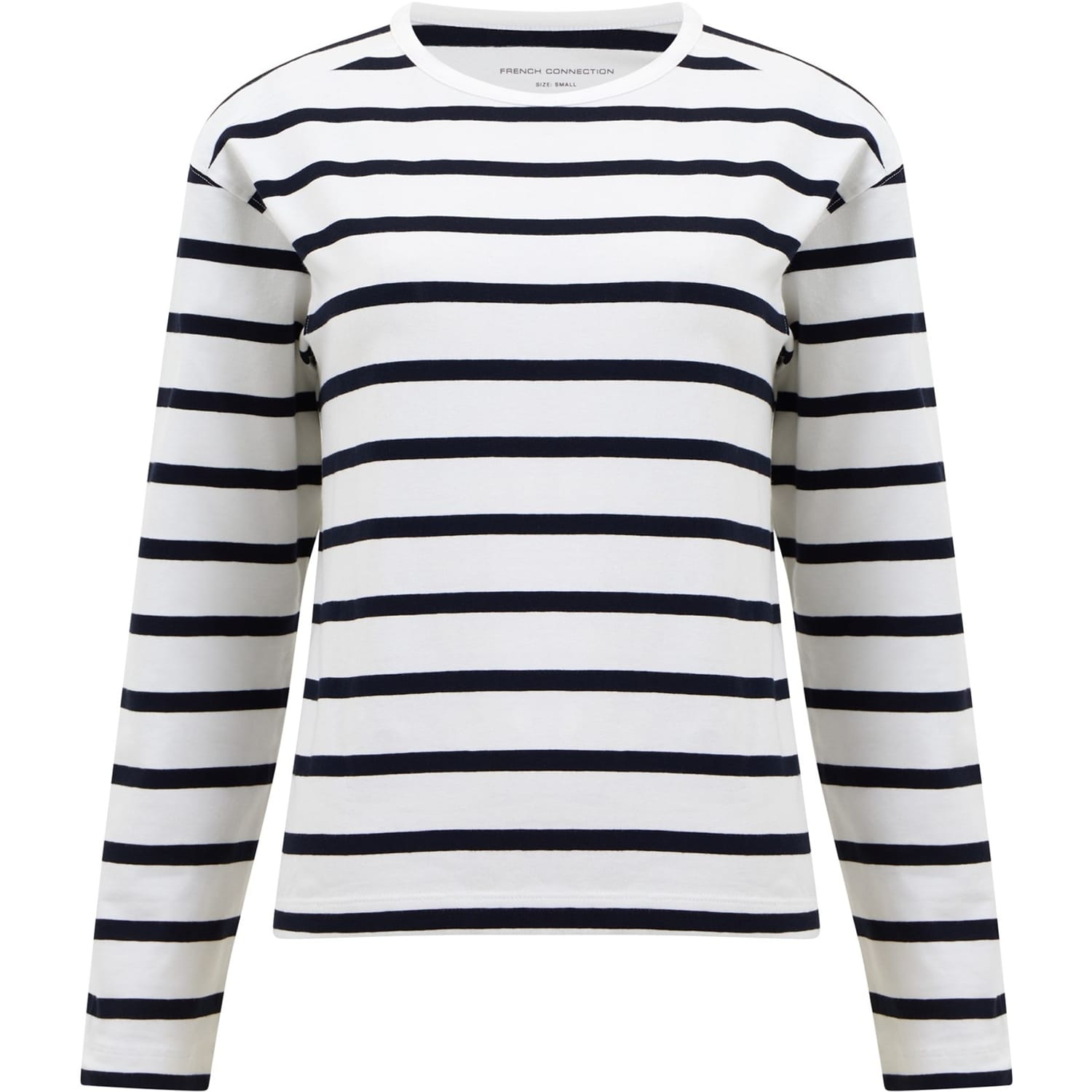 This French Connection top features a classic crew neck and a regular fit, offering a comfortable and stylish choice for any occasion. The horizontal stripe pattern adds a touch of modern flair, making it a versatile addition to your wardrobe. -