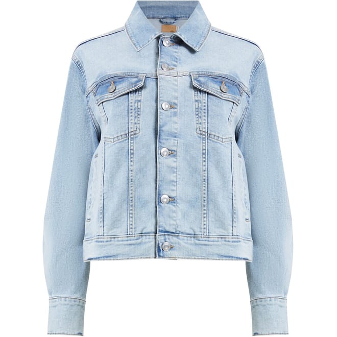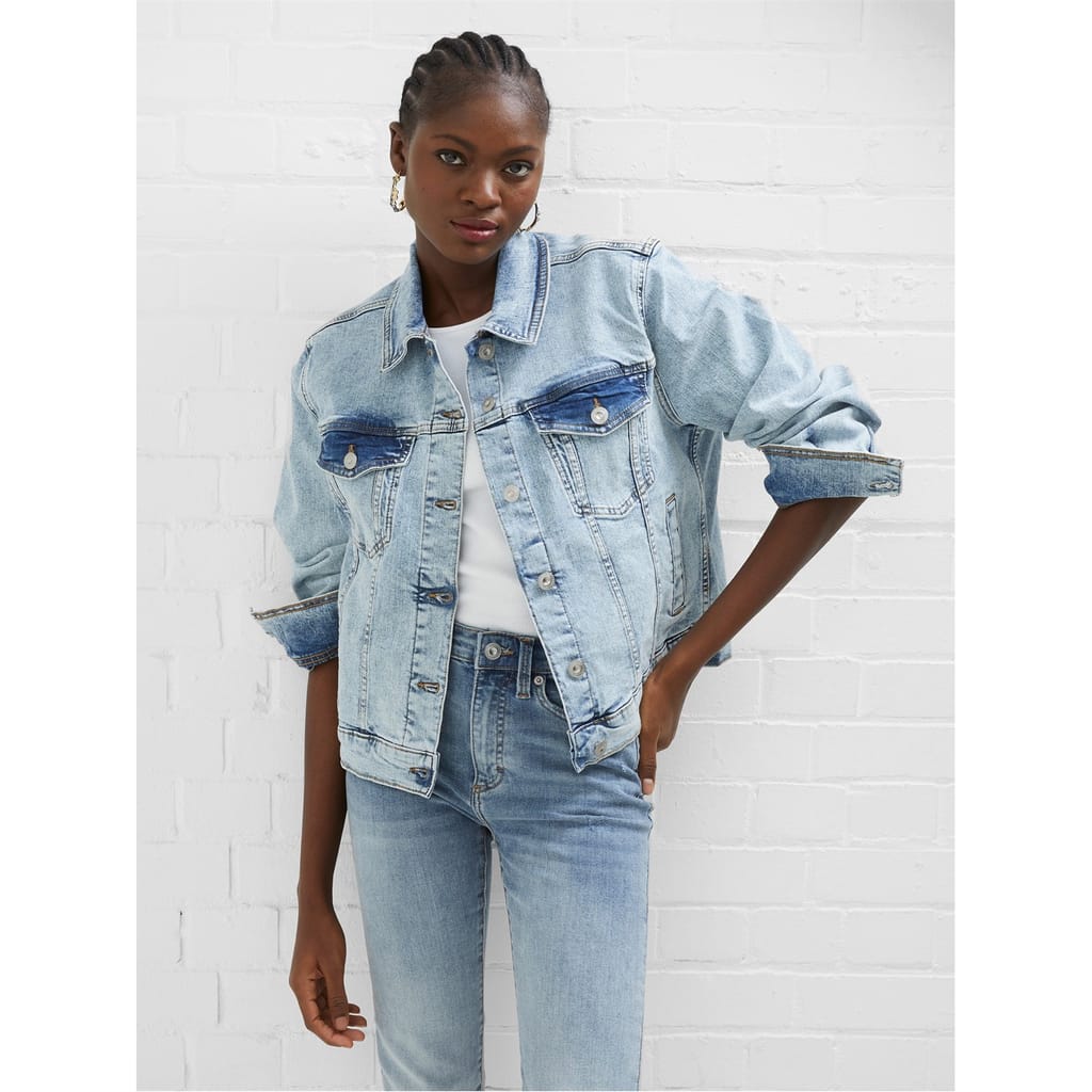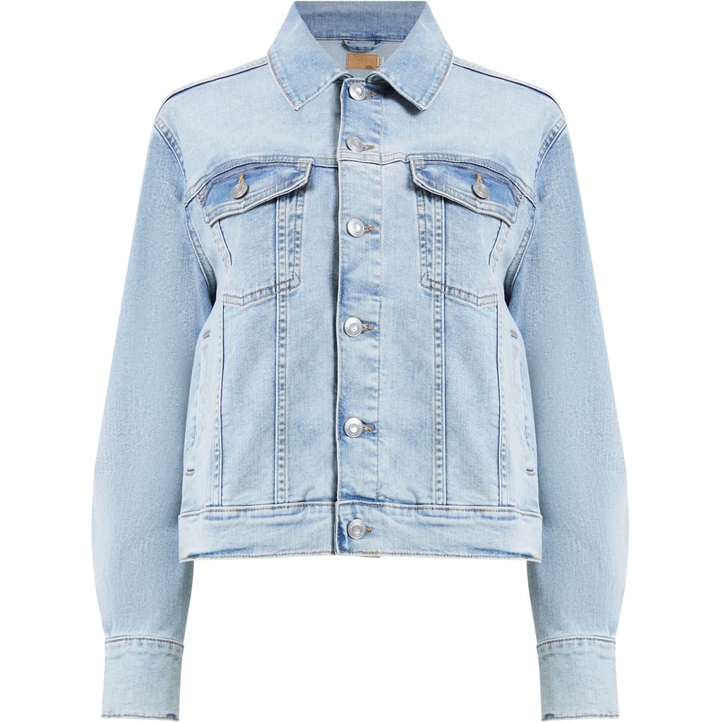 Embrace timeless style with this French Connection trucker jacket. This outerwear piece features a collared neck, button closure, and a regular fit. The short-length design and solid pattern ensure a versatile look, while the front pockets provide practicality and a classic touch. -