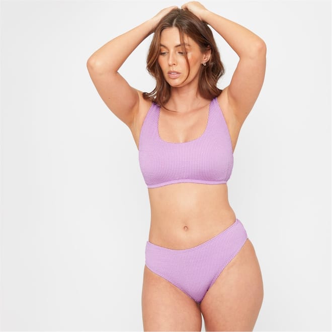 Elevate your poolside look with this textured square neck bikini top gives a update to a classic shape. Non-wired padded cups for added support, the stretch in the crinkle fabric ensures all-day comfort. -