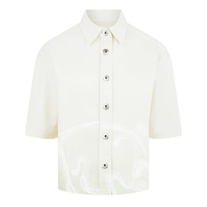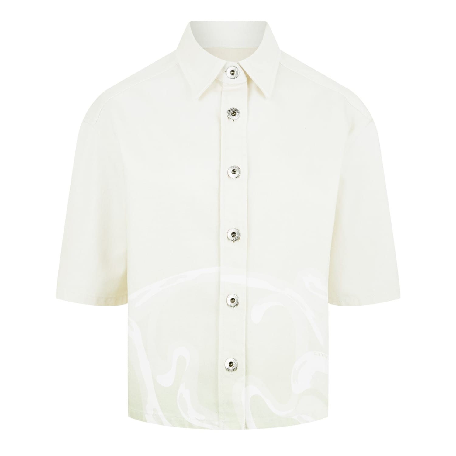 This Lanvin top from the casual collection features a relaxed fit and a stylish shirt collar. The graphic print adds a modern touch, while the button-down closure ensures a classic look. A subtle logo embellishment completes the design, making it a versatile addition to your wardrobe. -