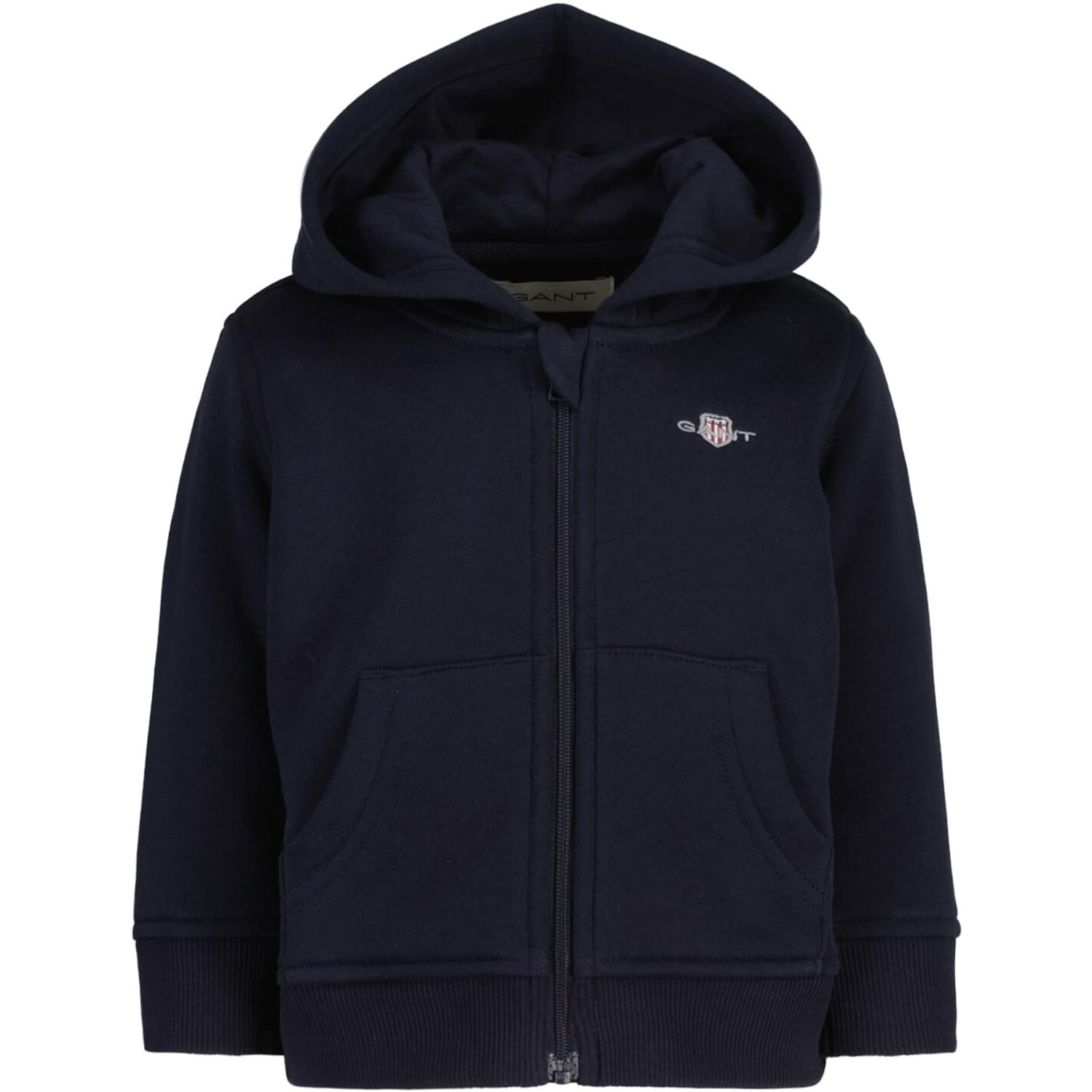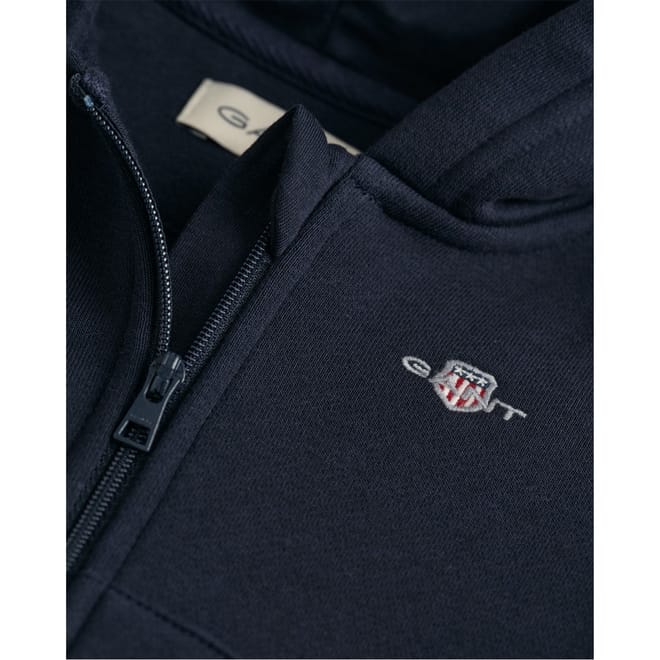 This GANT icon is now available for the smallest members of the family. Designed for a unisex, regular fit, this hoodie features a zipped front, patch pockets and soft rib details at the hem and cuffs. It is complete with a small GANT shield graphic embroidered at the chest.