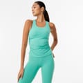 This USA Pro tank top combines style and functionality. Crafted for performance, it features a unique two-in-one design with ruched embellishments, making it a standout piece in your wardrobe. Perfect for those who seek both comfort and fashion in their activewear. -