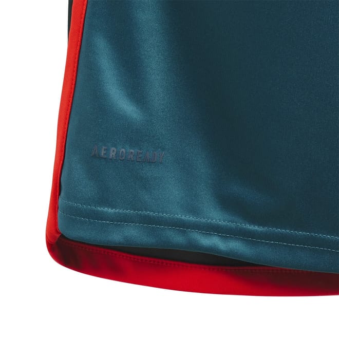 - Crafted from recycled polyester, the AEROREADY technology keeps them dry and comfortable, allowing them to unleash their best on the pitch. Cut in a slim fit, this shirt features a ribbed v-neckline, short sleeves, and a droptail hem to offer a sleek and modern look that exudes confidence.