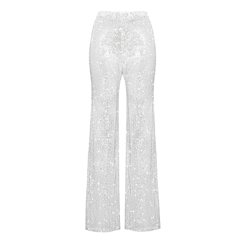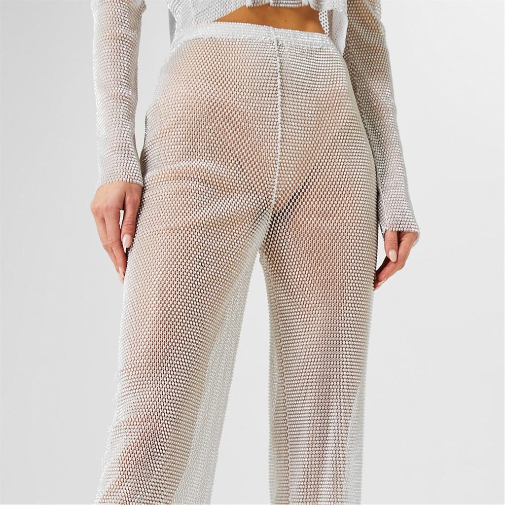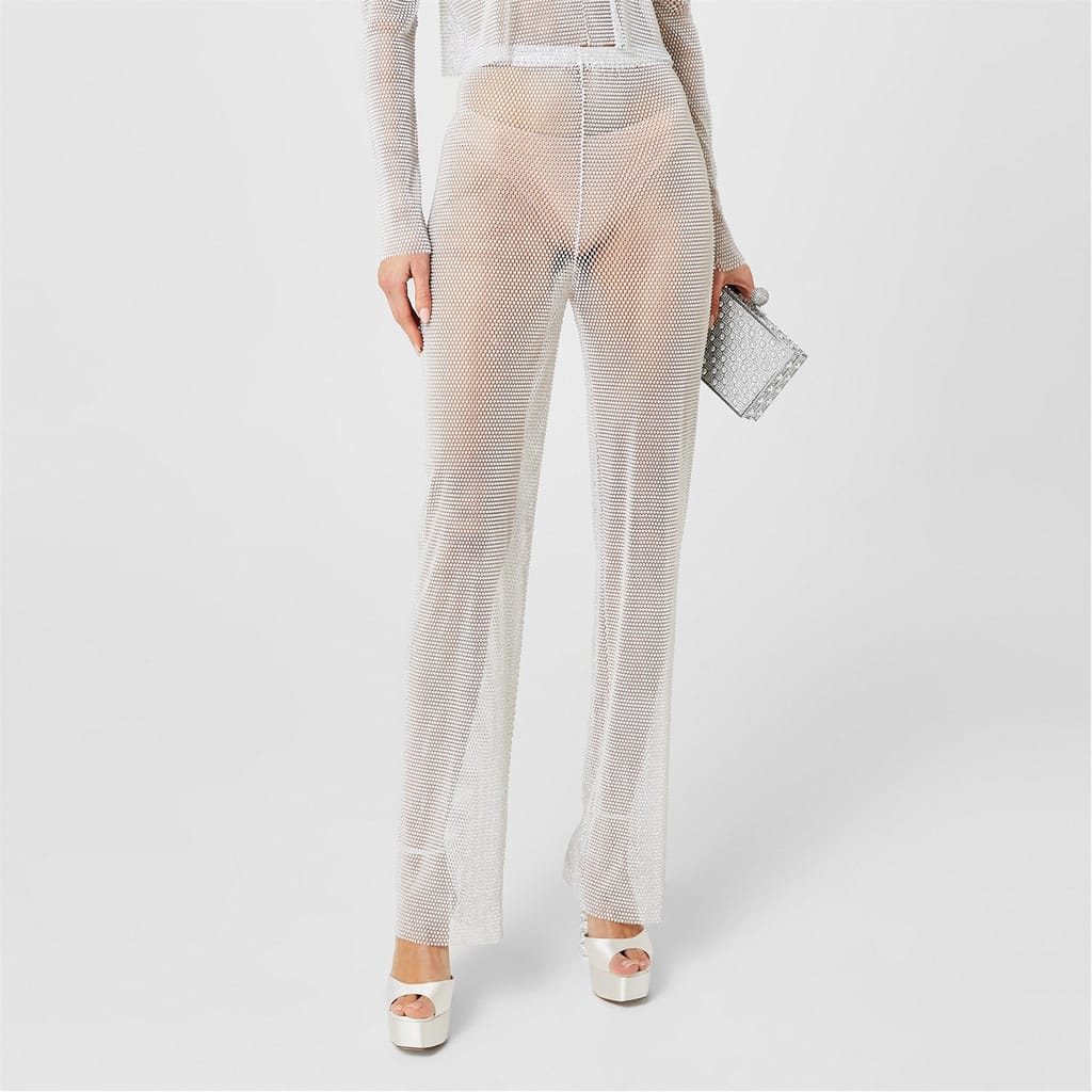 -Each piece in its new collection is lovingly handcrafted and designed to bring out your inner diva. These Sparkling Wide Leg Trousers takes the house's distinctive early 00s silhouettes and suffuses it with Studio 54 decadence, recalling the heyday of Grace Jones, Bianca Jagger and Deborah Harry. Perfect for the festive season, the decorative crystals will make you shimmer like the Christmas star you are. Exquisitely fashioned in a flirtatious sheer polyester blend, this striking piece features a high-waist and discreet tone-on-tone stitching.
