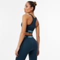 - Crafted from a stretch nylon blend and powered by Everdri sweat-wicking fabric, this sports bra keeps you comfortable and dry, you can power through your sweat session without any hassle. The seamless technology ensures a perfect, snug fit without irritation. Featuring body sculpting knitted panels and medium support with removable cups, this bra delivers a personalised fit and a smooth silhouette, feel confident and empowered during your workout. The racerback design is perfect for unrestricted movement, making it ideal for gym sessions or training at home.
