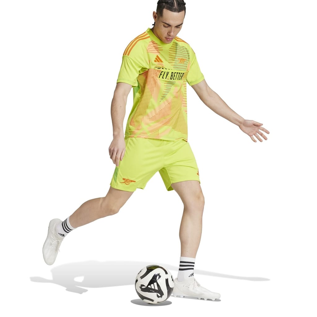 - In a striking yellow colourway, these shorts make a bold statement. The woven team crest and embroidered brand logo on the legs proudly showcase your allegiance to Arsenal. Ideal for match days, training sessions, or even casual wear, the Arsenal Goalkeeper Shorts 2024 2025 combine style, comfort, and performance.