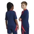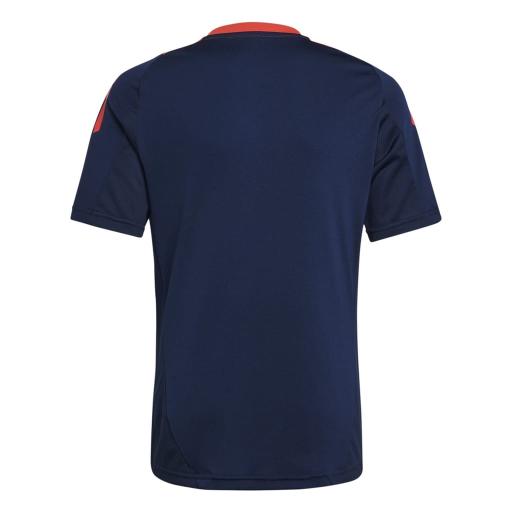 - Crafted with high-quality polyester and enhanced with AEROREADY moisture-wicking technology, this shirt ensures optimal comfort and performance for little champions on and off the pitch. Its regular fit and crew neckline offer a timeless design. The short sleeves, adorned with ribbed trims, provide unrestricted movement, allowing your little one to cheer their team to victory.