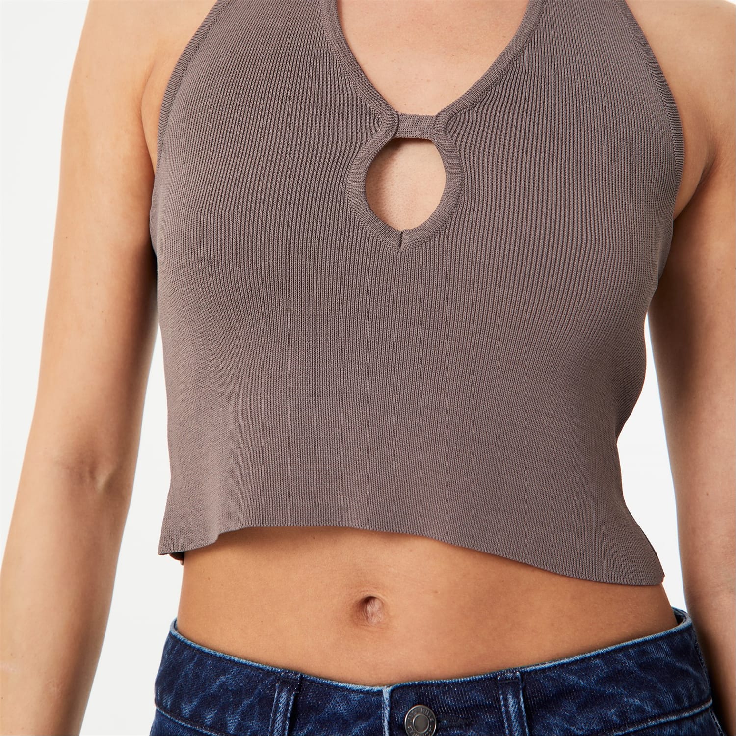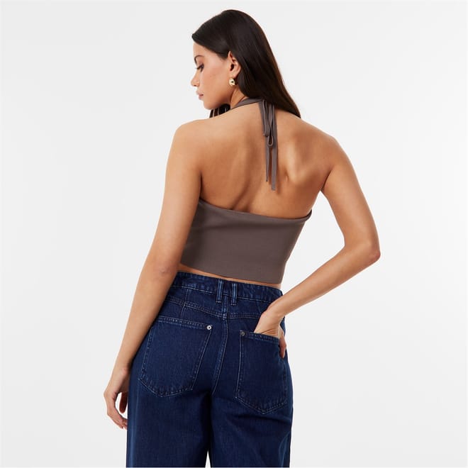 - Crafted from a soft ribbed knit construction, this top offers the utmost comfort during everyday adventures. Its slim fit and cropped length provides a flattering silhouette, while the halterneck design with a trendy tie fastening adds a touch of sporty elegance, while the cut-out detail at the front adds a trendy twist.