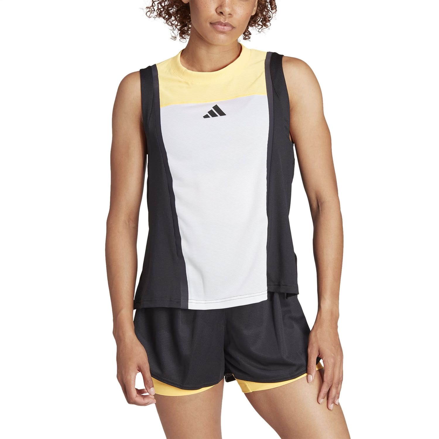 Elevate your training sessions with this adidas tank. Featuring a long sleeve design and a crew neck, it combines performance attributes with a regular fit for optimal comfort. The color block pattern and logo embellishment add a stylish touch, making it a standout piece for any workout. -