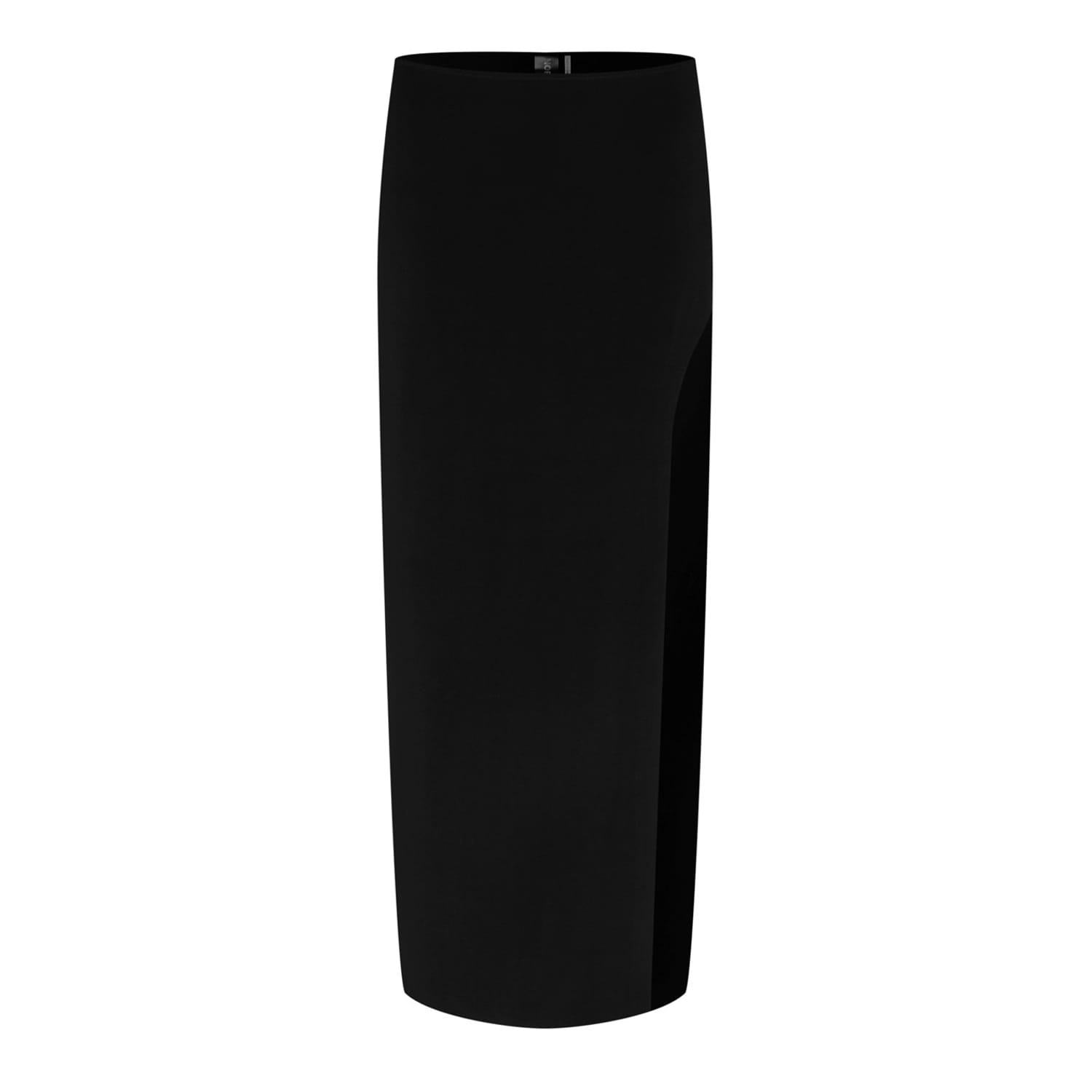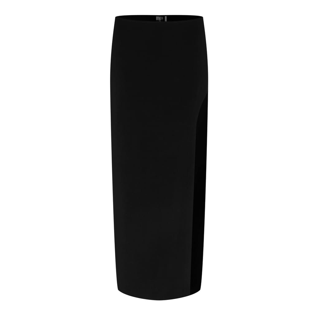 This Norma Kamali maxi pencil skirt is a perfect addition to your casual collection. Designed with a slim fit, it features a stylish slit embellishment, adding a touch of elegance to your wardrobe. Ideal for those seeking a blend of comfort and style. -