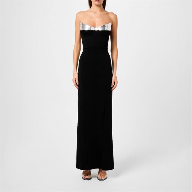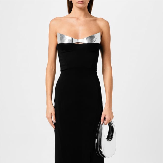 Immerse yourself in the world of Mugler as you discover the captivating allure of their latest creation: the Strapless Maxi Dress. With a fusion of futuristic themes from the label's SS24 collection, this dress is a testament to Mugler's commitment to pushing boundaries and redefining style.