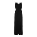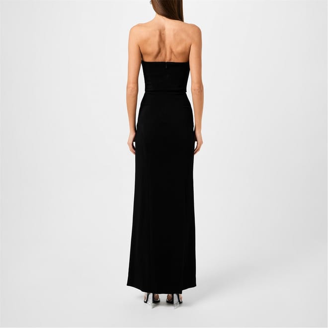 - Crafted from a luxurious blend of viscose and polyurethane in a crepe fabric, this dress feels exquisite against the skin and offers a figure-flattering fit. The tailored strapless bodice, complete with boning, sculpts the frame, ensuring a flawless silhouette. The dress features a rear zip and hook fastening, ensuring a seamless and secure fit. Partially lined for comfort, this dress is suitable for various occasions, whether it's a high-profile event or a glamorous evening affair.