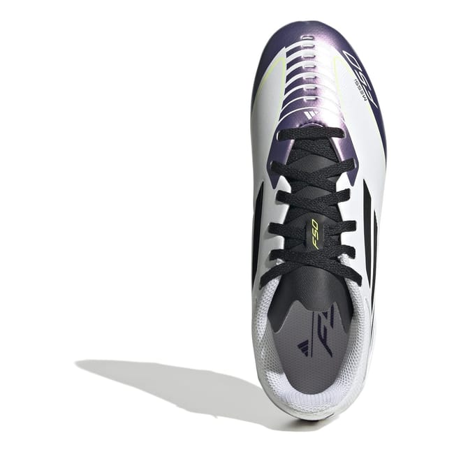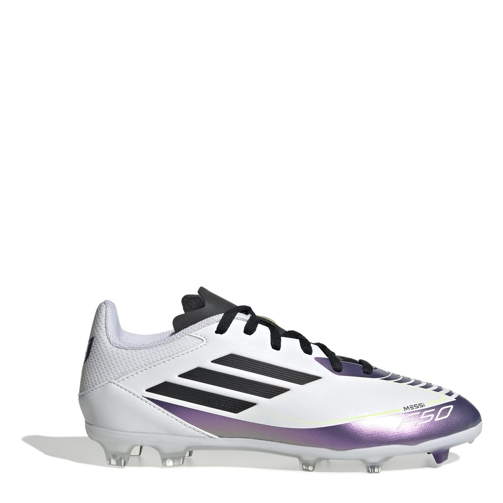 Inspire your youngster with Lionel Messi's iconic style with the adidas Messi F50 Firm Ground Football Boots. Designed to fit like a second skin, these boots offer unmatched comfort and control for confident play. The HybridTouch upper enhances fluid movements, adding finesse and flair to every touch, while the Sprintplate 360 outsole delivers explosive speed to propel them towards glory. Your youngster will feel unstoppable in boots inspired by one of the beautiful game’s greats.