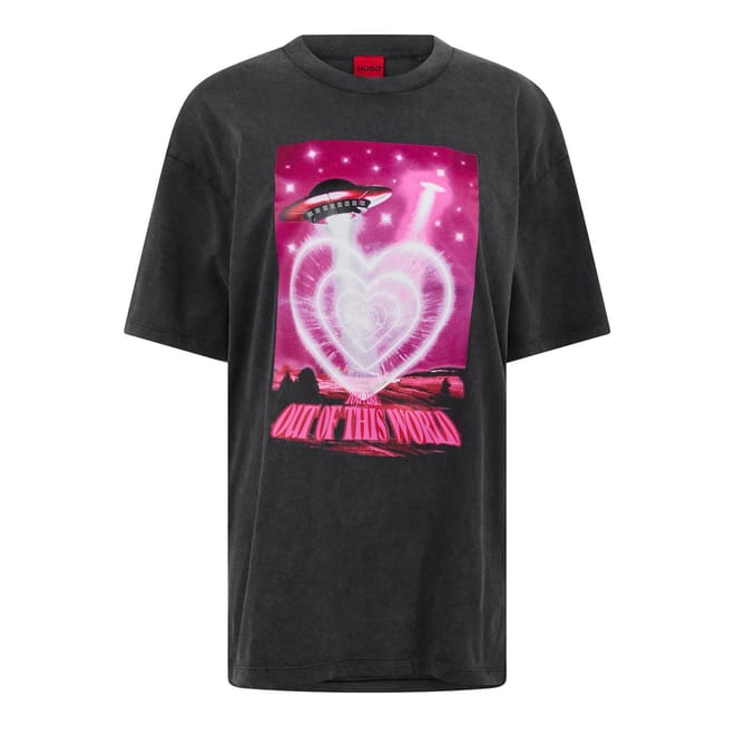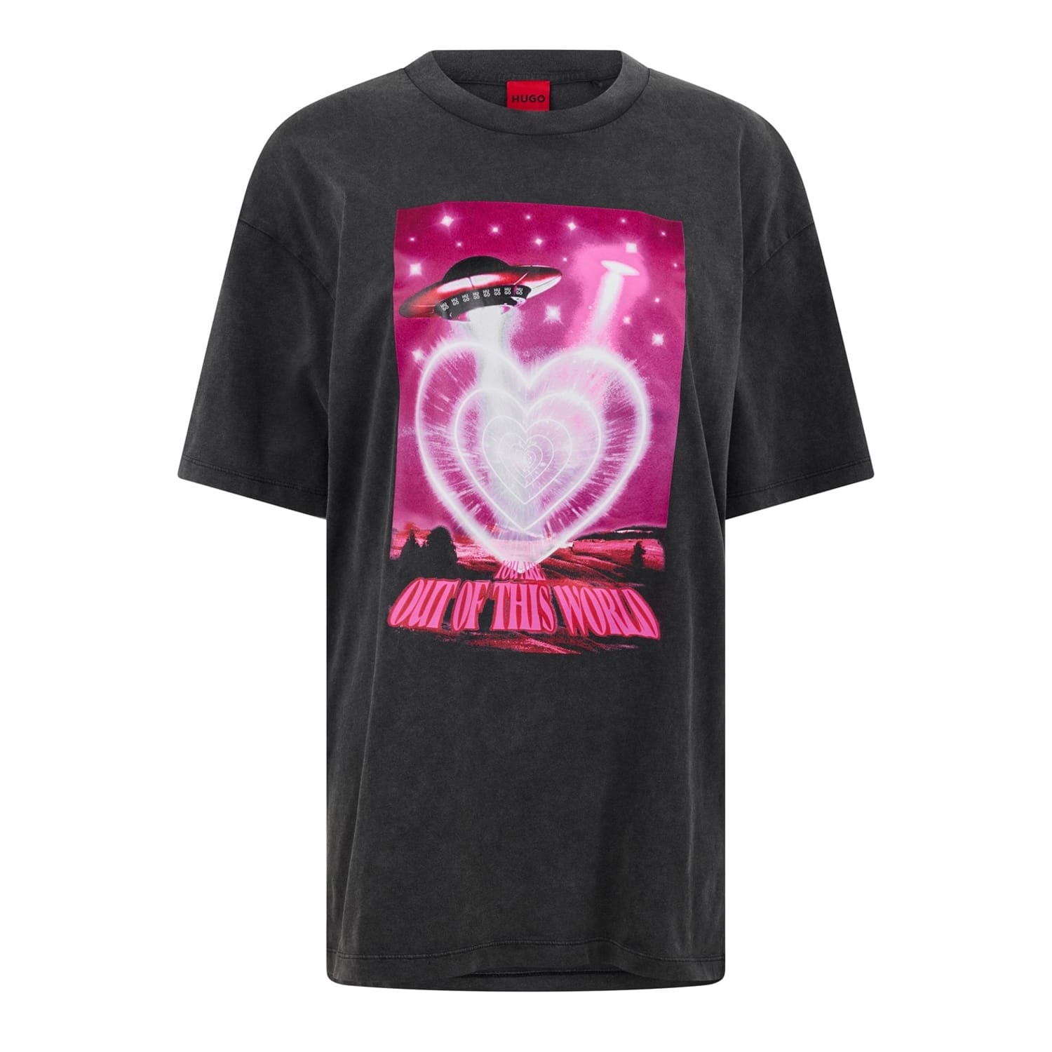 This Hugo top features a regular fit and a classic crew neck, offering a comfortable and stylish option for your wardrobe. The graphic print adds a modern touch, while the logo embellishment subtly showcases the brand's identity. Perfect for those who appreciate a blend of simplicity and contemporary design. -