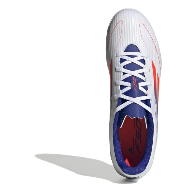 - Designed in a striking colourway, the strategically placed 3D lines, enhance the ball touch and ensure quick, agile movement that captivates both the eye and the pitch. Adorned with the iconic 3 stripes on the sides, 3 bar logo and F50 logo, these boots are a symbol of agility and resilience. Embrace the power of adidas with the F50 Club Indoor Football Boots and take your game to new heights. -
