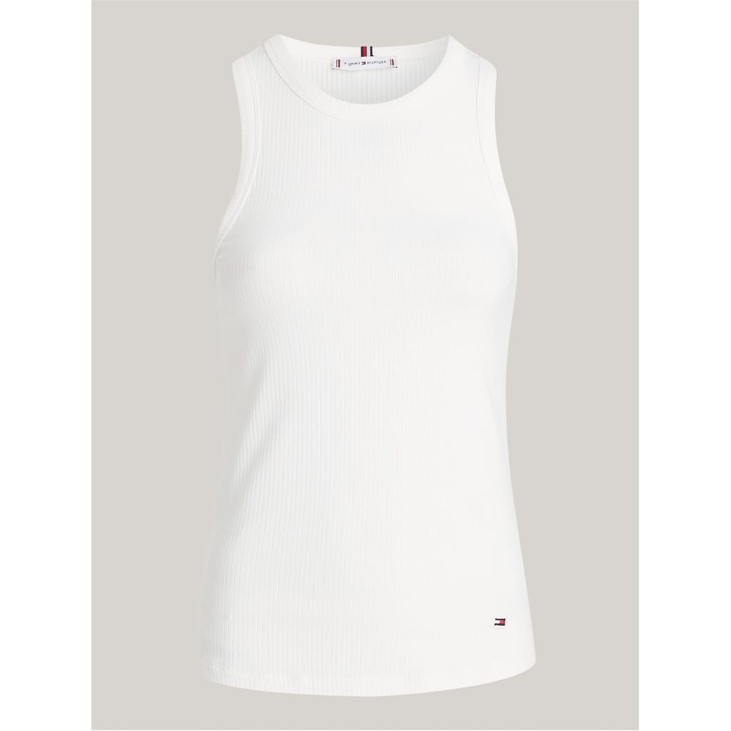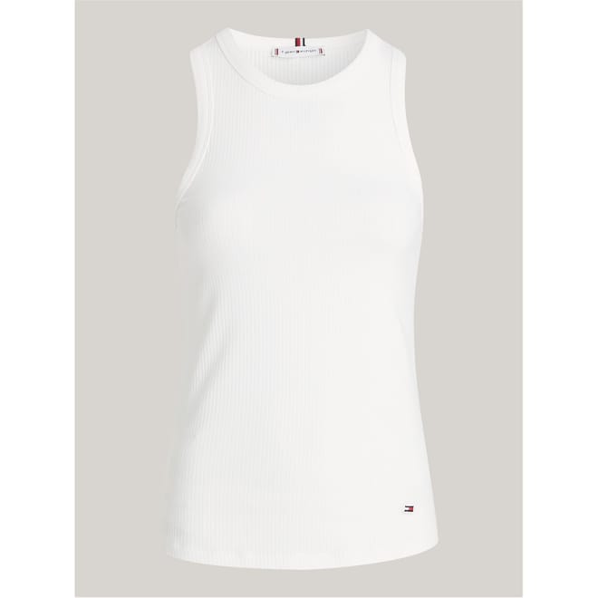 Elevate your essentials with this Tommy Hilfiger tank. Crafted for a slim fit, this sleeveless top features a crew neck and ribbed pattern, blending style and comfort seamlessly. -