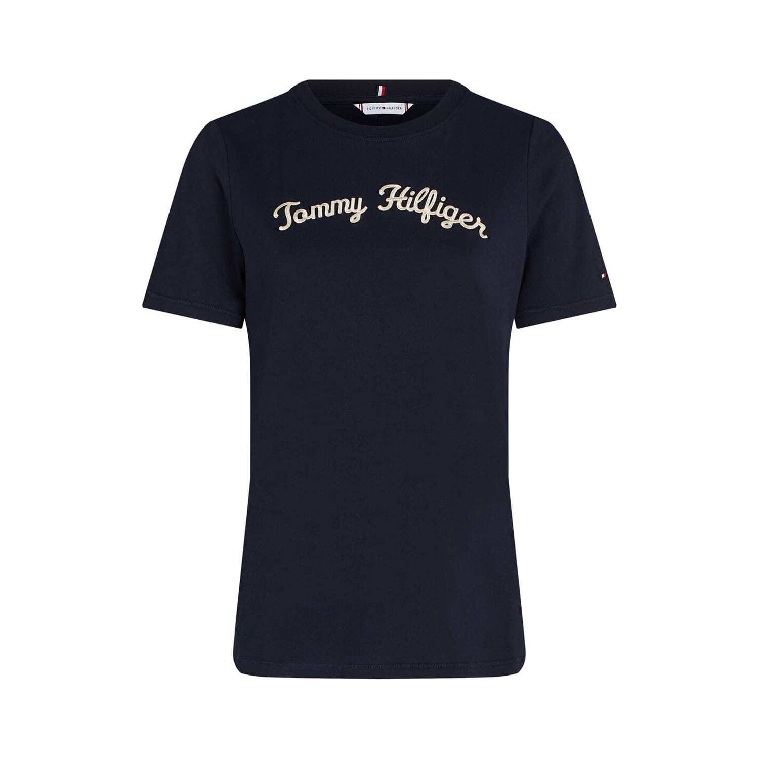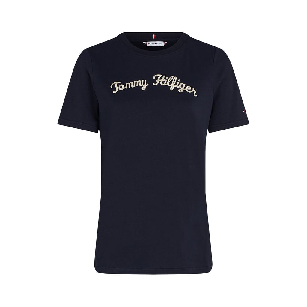 This Tommy Hilfiger top features a crew neck and regular fit, offering a comfortable and stylish option for your wardrobe. The graphic print adds a modern touch, while the embroidered logo embellishment provides a signature finish. -