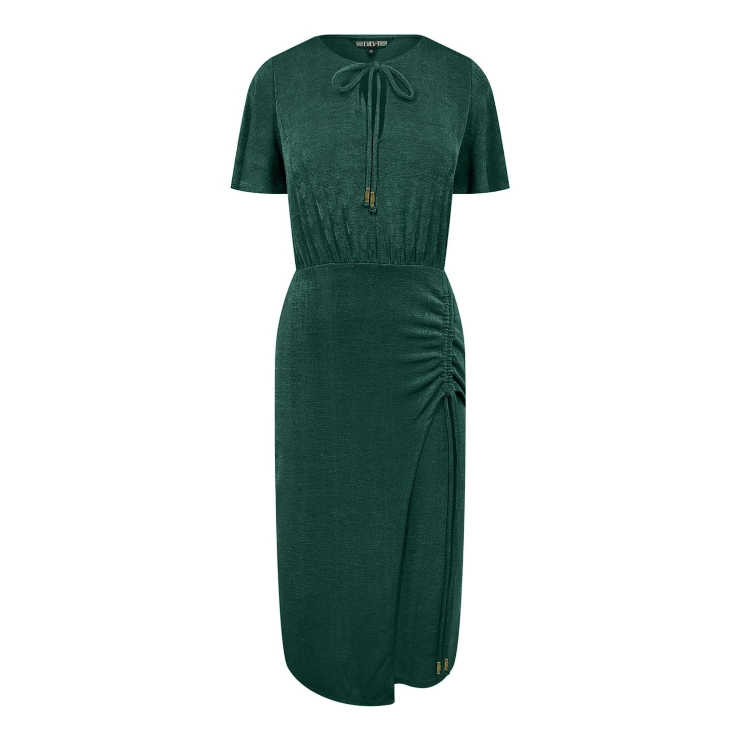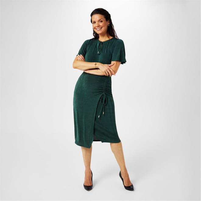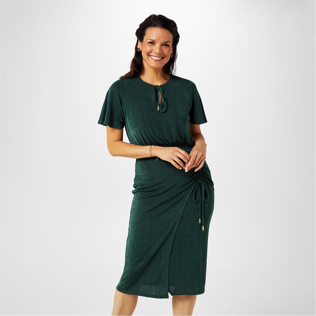 Indulge in effortless elegance with the Biba Keyhole Jersey Dress, a versatile piece crafted for comfort and style. Made from soft jersey fabric, this dress drapes flatteringly, offering a slinky and chic silhouette. The keyhole neckline with a tie opening adds a touch of allure, accentuated by Biba branded hardware for a signature touch. Featuring a cinched waist and gathered side detailing, this dress enhances your curves in all the right places.