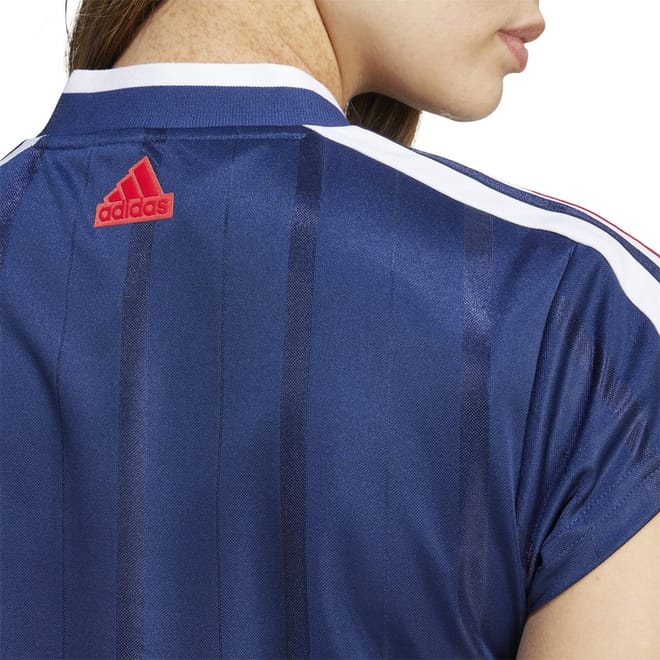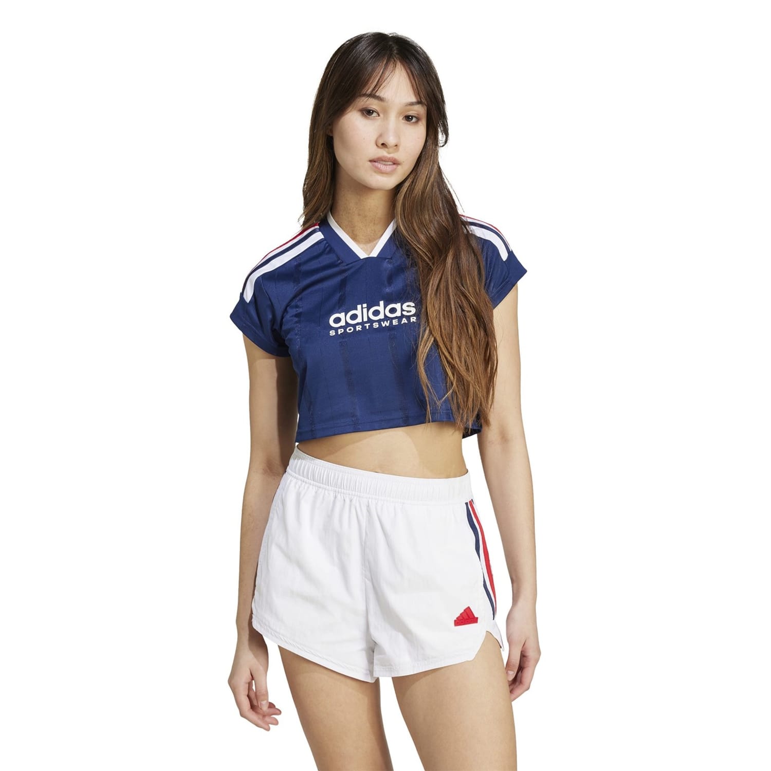 - Sporting a crop cut, this piece adds a trendy edge to any ensemble, while the wide stripes and ribbed v-neck, pay homage to the brand's football heritage. Designed for versatility, this jersey seamlessly transitions from day to night, ensuring that you stay effortlessly stylish on any occasion. With impeccable attention to detail, adidas has adorned the chest with a rubber-printed sportswear graphic, showcasing their commitment to athletic excellence. Let's not forget the iconic three stripes that grace both sleeves, a symbol of prestige and timeless style. Whether you're at a sporting event, social gathering, or simply going about your daily routine, this crop top allows you to add a t -