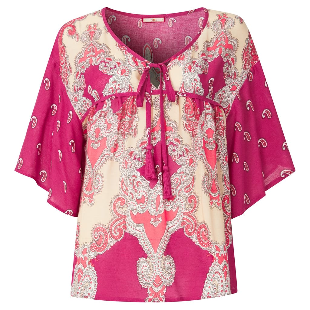We get real holiday vibes from this stunning, pink top. Its majestic print and tassel detail will certainly add a pop of colour to your summer style, that’s for sure. Tucked into shorts or worn loose with jeans, the bib seam and tie at the front help to create a flattering, relaxed fit that’ll leave you feeling fantastic.