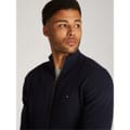 Elevate your outerwear with this waist-length Tommy Hilfiger bomber jacket. It features a zip neck and a full zipper closure for convenience. Designed in a solid pattern with a regular fit, this jacket includes ribbed cuffs and a subtle logo embellishment for a refined look. -
