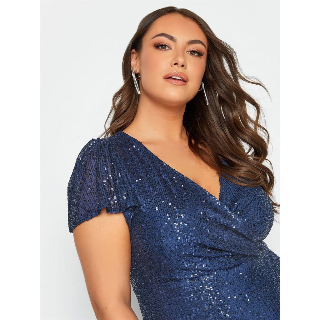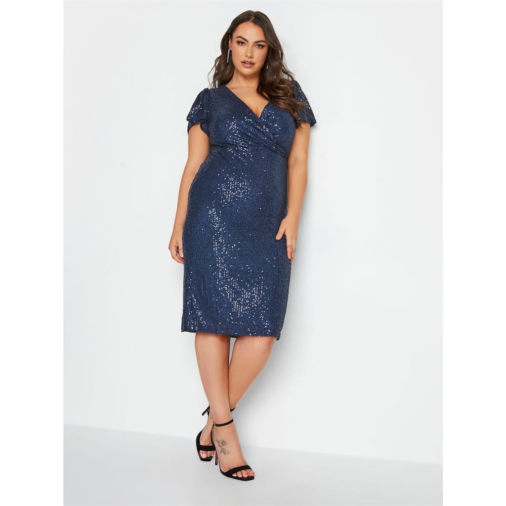 Make a stunning statement in this Yours London sequin dress! Featuring short cap sleeves, a sparkling design and a wrap neckline, this is the dress you need for your next night out. Style with heels and a cute clutch bag to finish this fashionable look. -