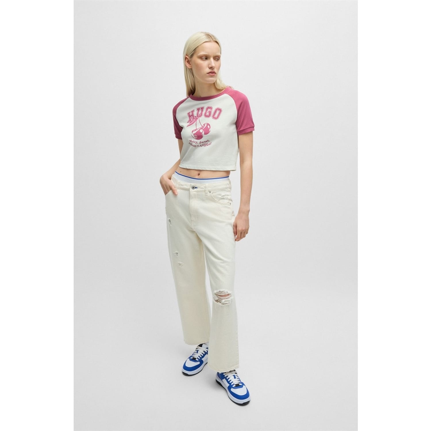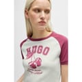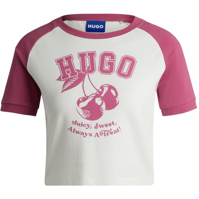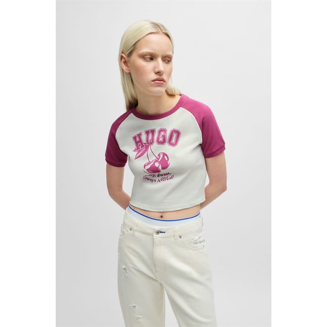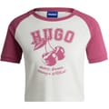 Elevate your casual wardrobe with this cropped baseball T-shirt from Hugo. Featuring a comfortable crew neck and short raglan sleeves, this regular fit T-shirt combines a striking graphic print with a stylish logo embellishment. Perfect for a contemporary look, it's an essential addition to your collection. -