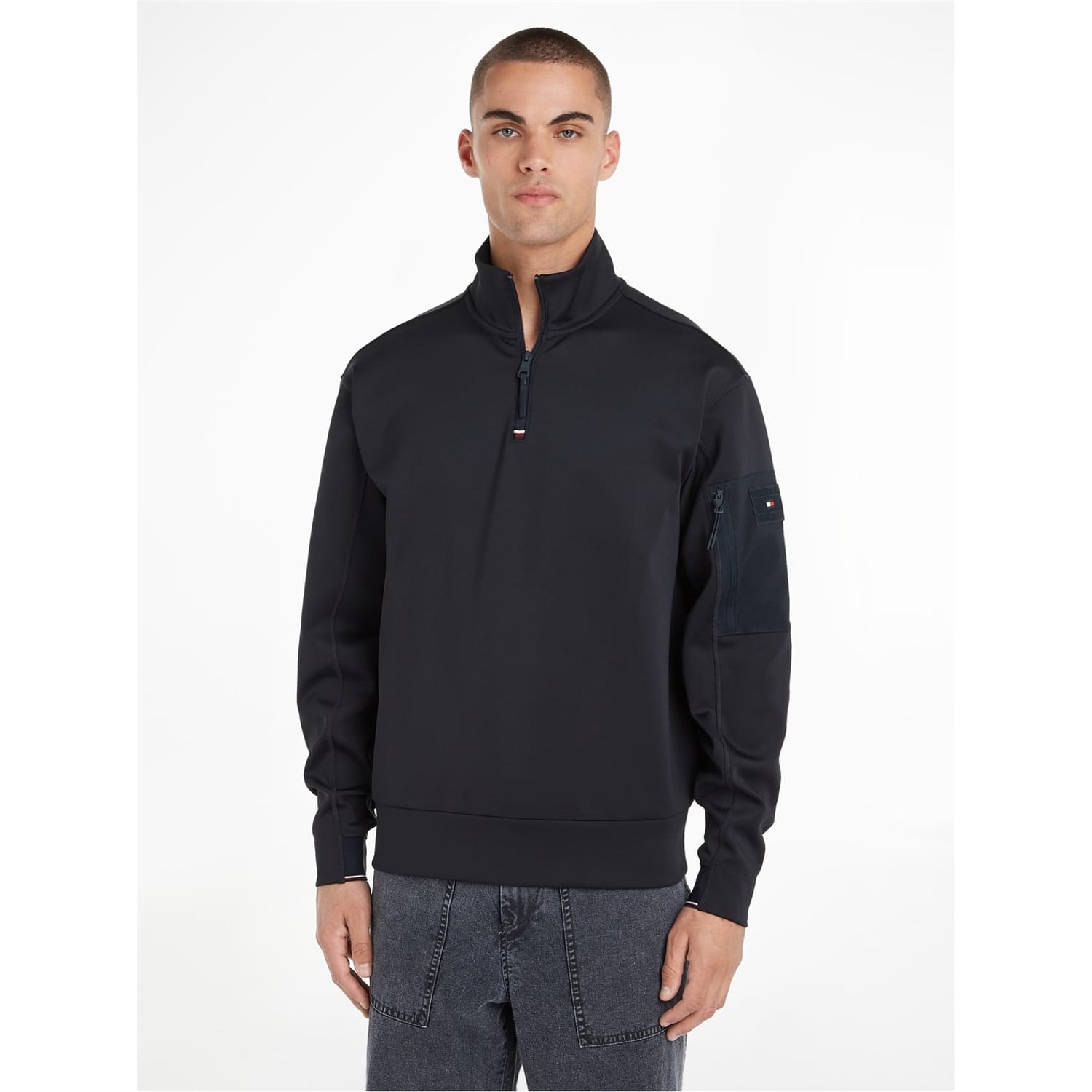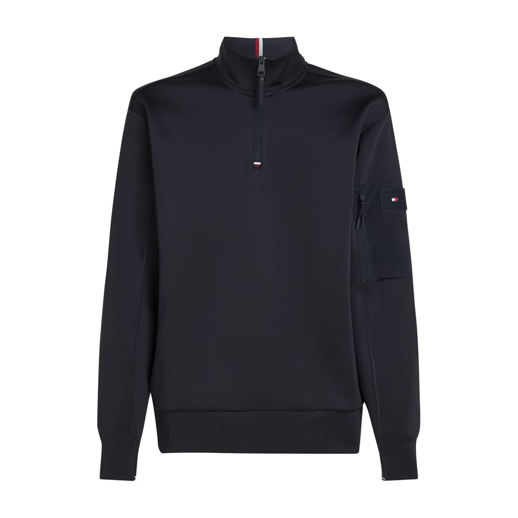 Elevate your casual wardrobe with this Tommy Hilfiger sweatshirt. Crafted from a solid pattern, this long sleeve top features a zip neck and ribbed cuffs. The regular fit ensures comfort, while the signature logo adds a touch of brand identity. -