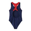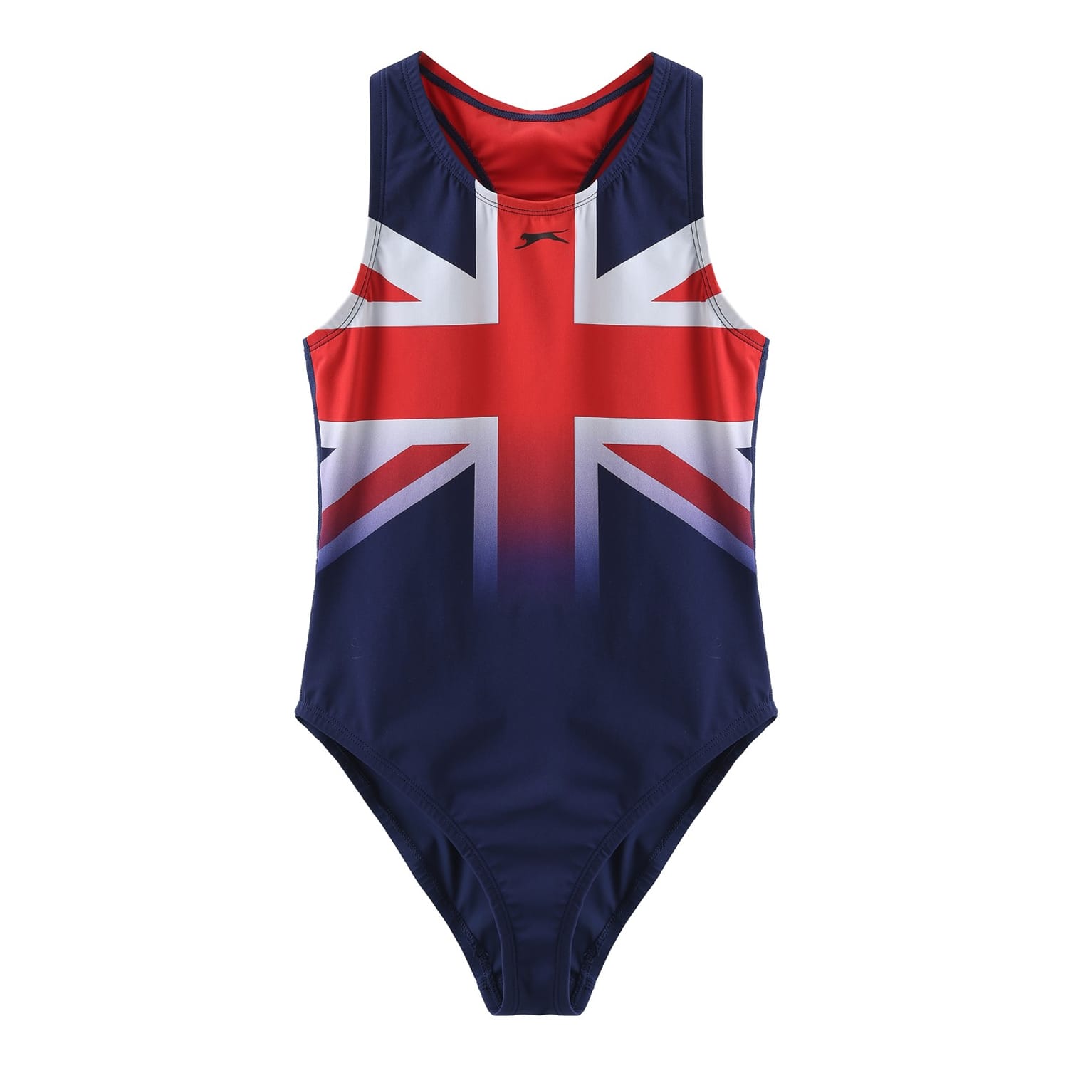 Dive into style with this Slazenger swimwear. Featuring a crew neck, racerback design, and regular fit, it's perfect for swimming. The graphic print with flag and logo embellishments add a distinctive touch to your swim gear. -