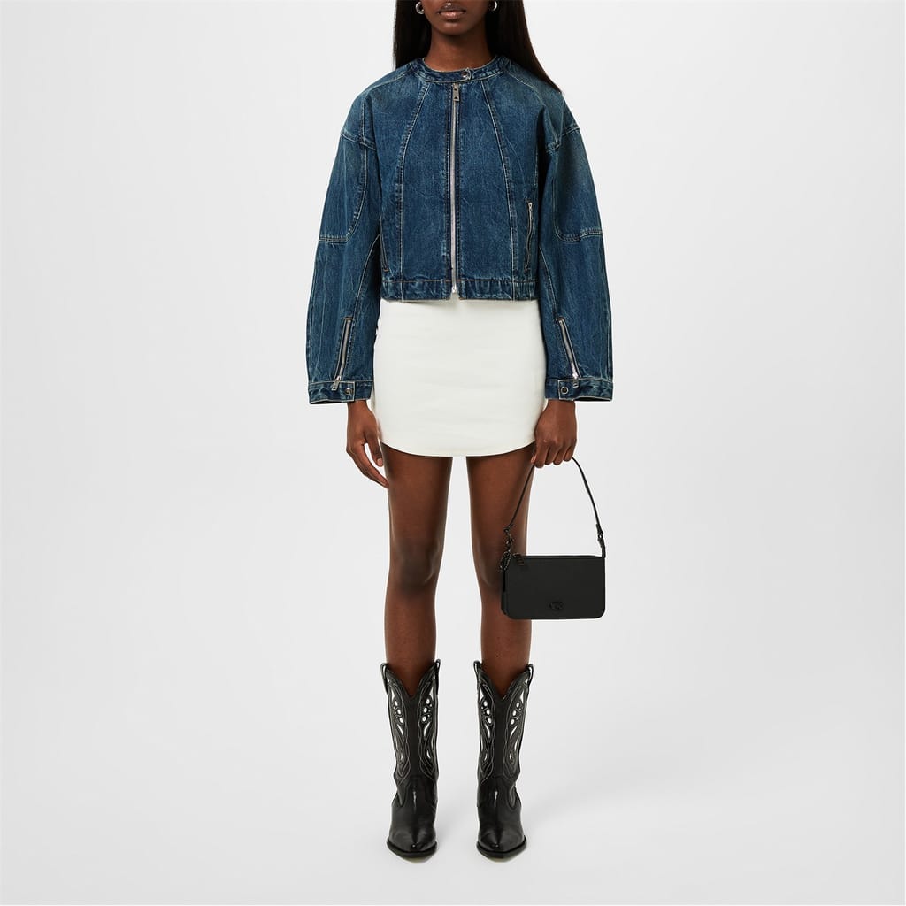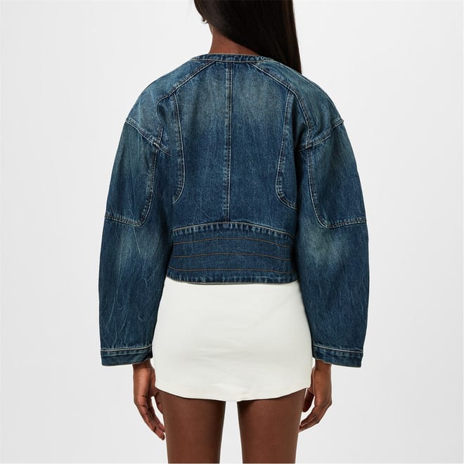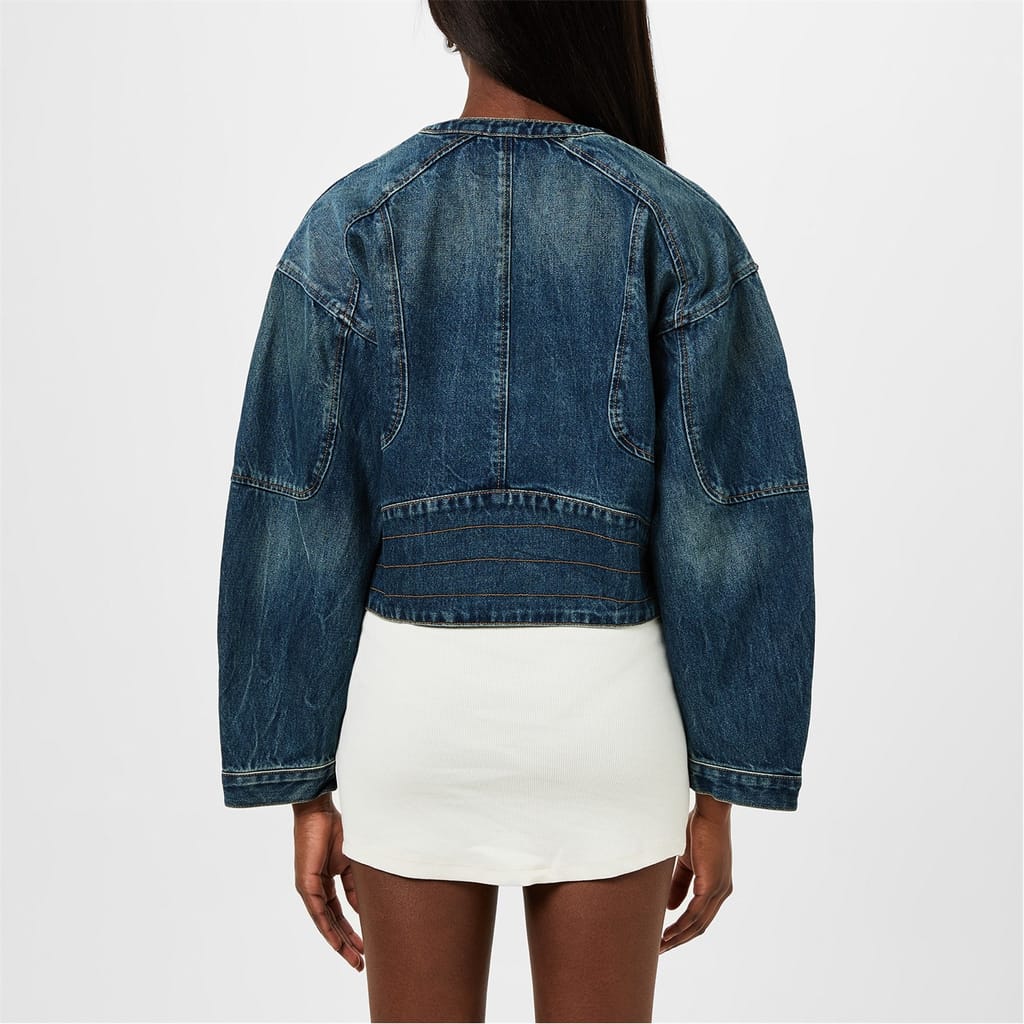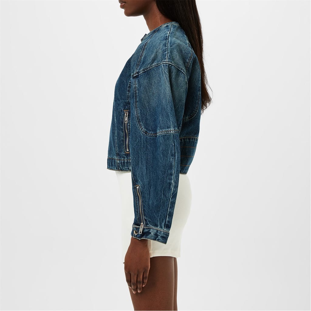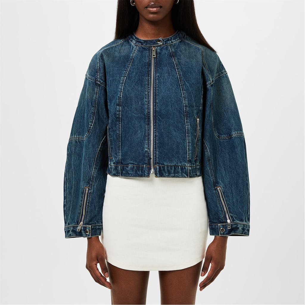 Discover the denim jacket by Eb denim, a staple piece with a classic boxy fit and solid pattern. This short jacket features a practical zipper closure and pockets, embodying effortless style and functionality. Perfect for any casual wardrobe, it's an ideal choice for those seeking a timeless addition. -