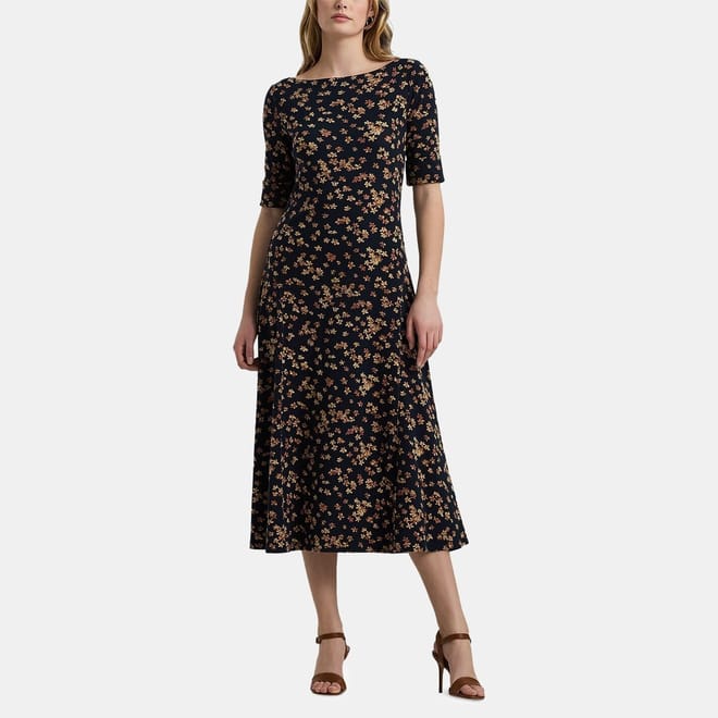 - Designed with a navy base and a contrasting all-over floral print radiating a sense of classic allure. Whether it is a daytime brunch or an evening soiree, the Lauren by Ralph Lauren Munzie Midi Dress exudes premium style and effortless grace. Pair with heels and a shoulder bag for a complete look.