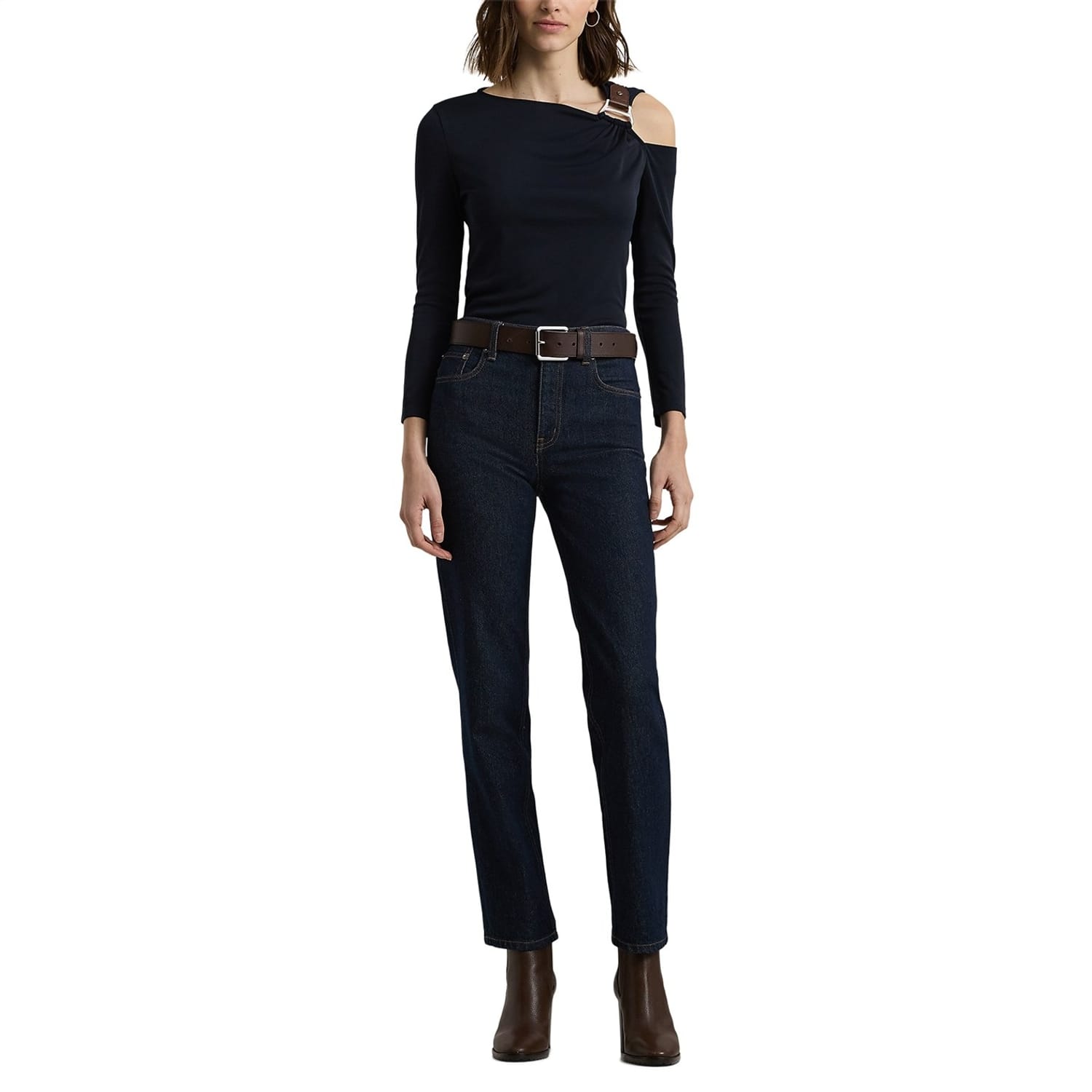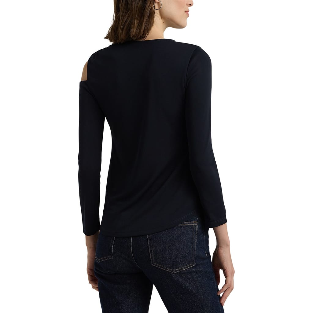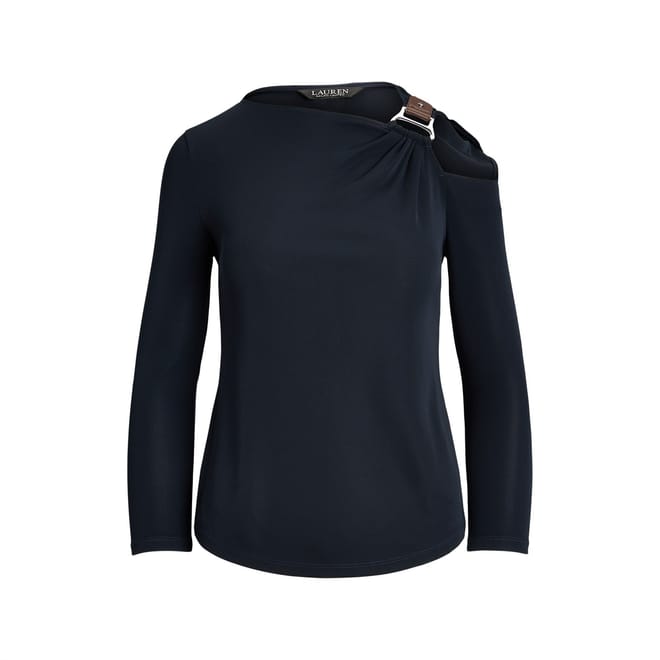 Step into the world of sophistication with the Lauren by Ralph Lauren Harlee Top. Crafted from soft fabrications, this top offers comfort and style. Its regular fit and curved hem create a flattering silhouette that is both trendy and timeless. The long sleeves provide coverage and warmth, while the asymmetrical neckline with a single cold shoulder, featuring a buckle strap, adds a touch of edginess to this classic design.