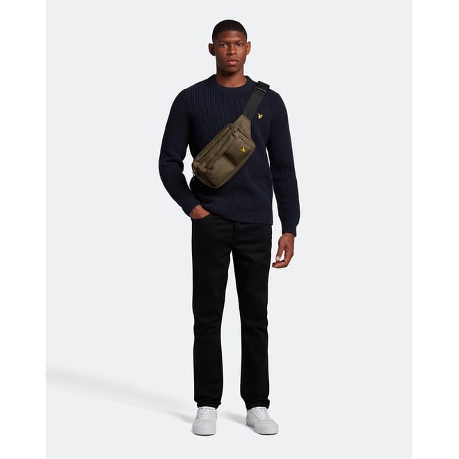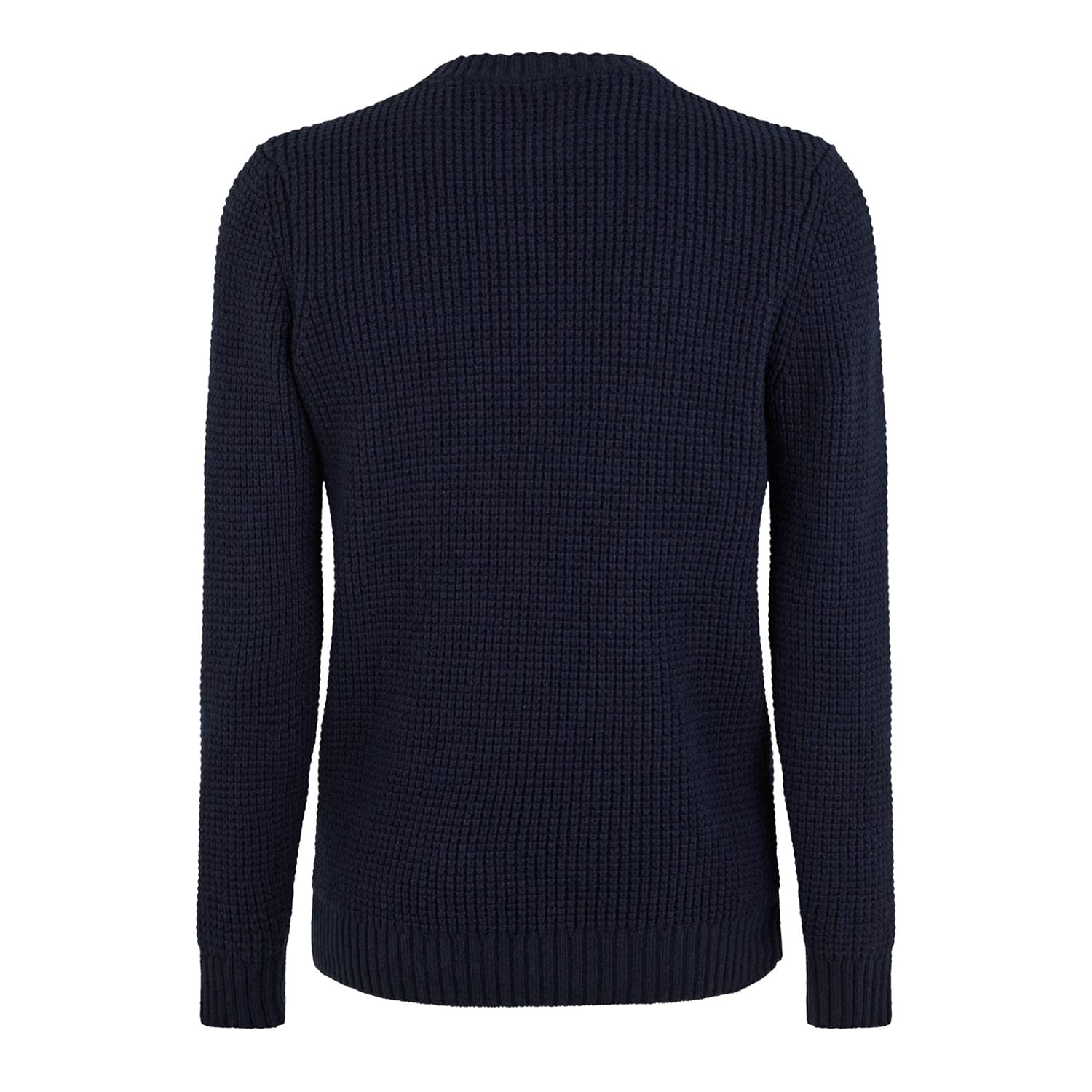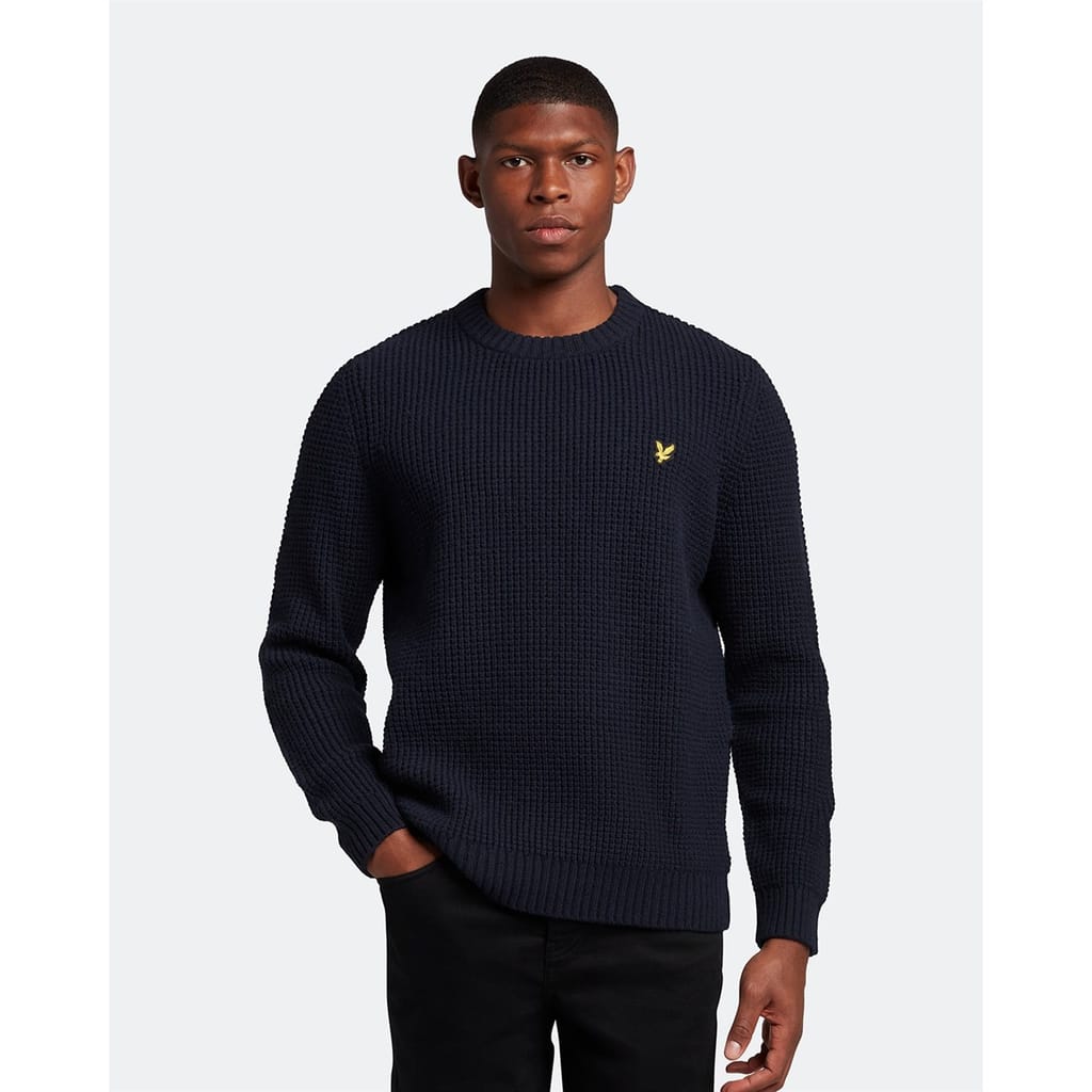 This Lyle and Scott sweater features a crew neck and long sleeves, offering a regular fit for comfortable wear. Made of knit fabric, it showcases a ribbed cuff and solid pattern. Embellished with a subtle logo, it combines classic style with everyday functionality. -