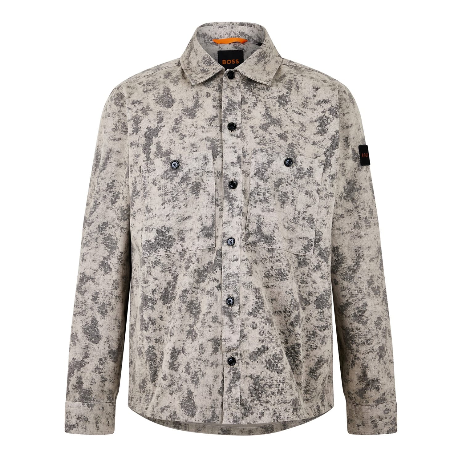 Elevate your outerwear collection with this Boss overshirt. Featuring a shirt collar and a classic button closure, this overshirt offers a regular fit for comfortable wear. The abstract pattern adds a modern touch, while the long sleeves provide warmth. Complete with a chest pocket, this versatile piece combines style and functionality. -
