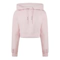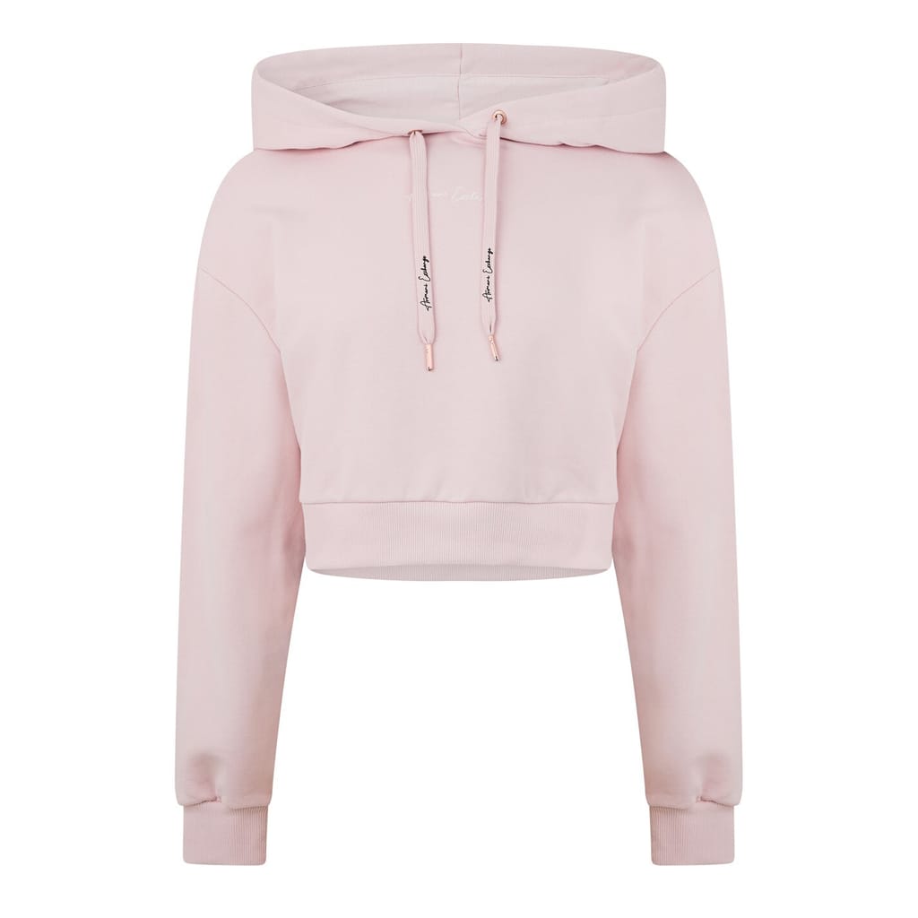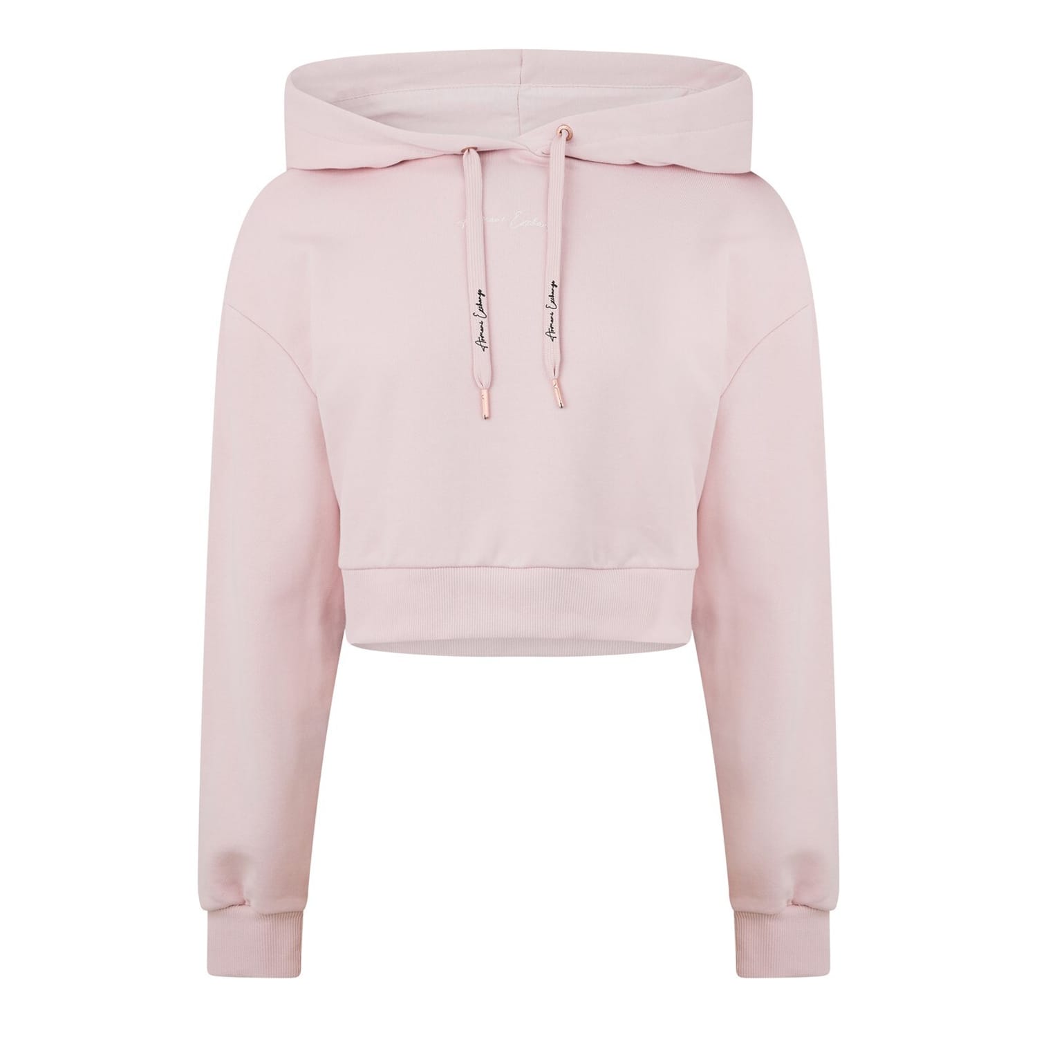 This Armani Exchange cropped hoodie sweatshirt offers a casual yet stylish look. Featuring a drawstring hood and long drop shoulder sleeves, it provides a relaxed fit. The ribbed cuffs add a touch of detail, making it a versatile choice for everyday wear. -