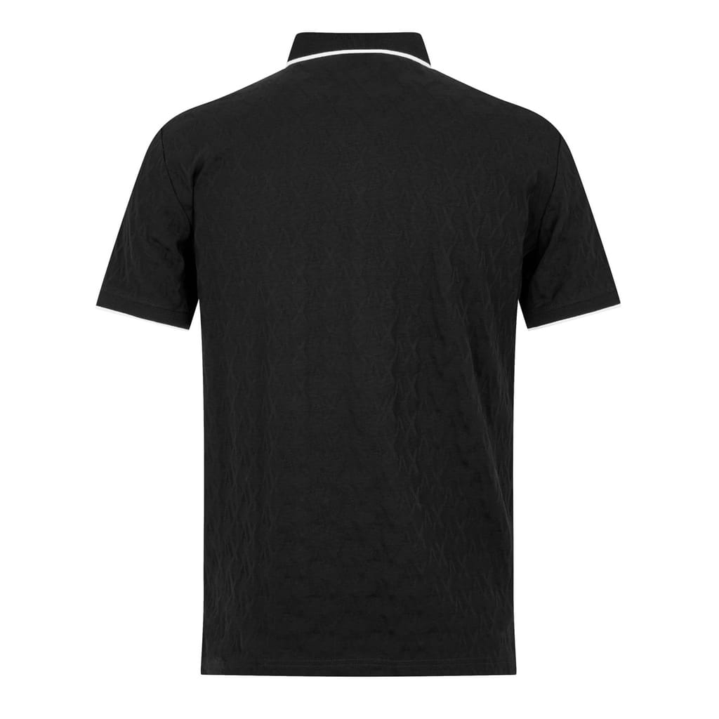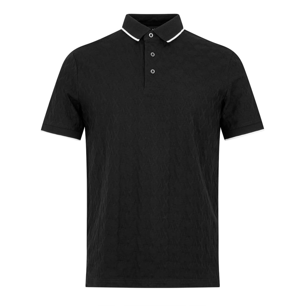 This Armani Exchange polo shirt offers a semi-formal collection appeal with its all-over logo pattern. Featuring a short sleeve design, polo collar, and button closure, it provides a comfortable regular fit. Perfect for those who appreciate style and subtle branding, this top is a versatile addition to any wardrobe. -