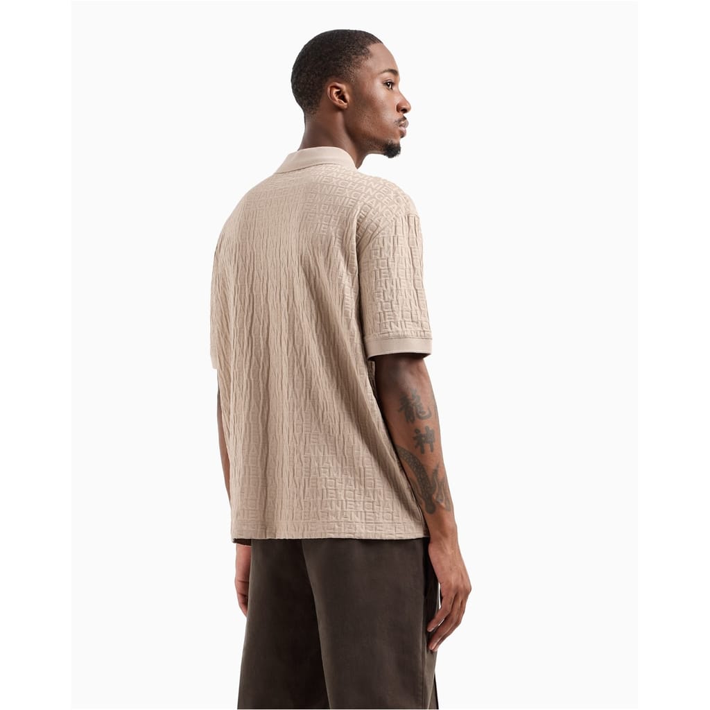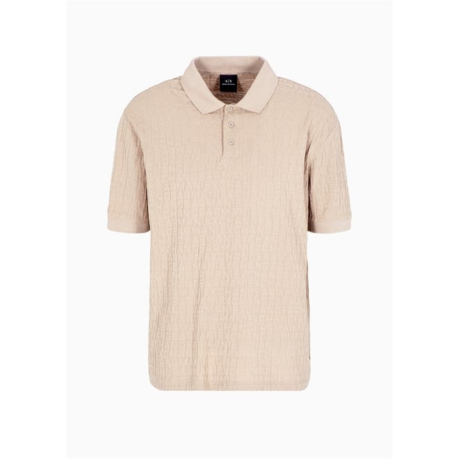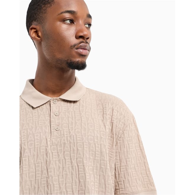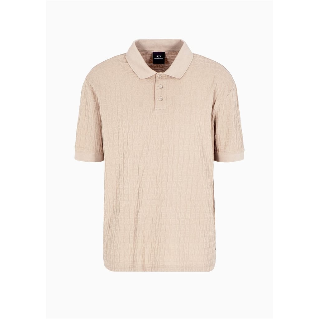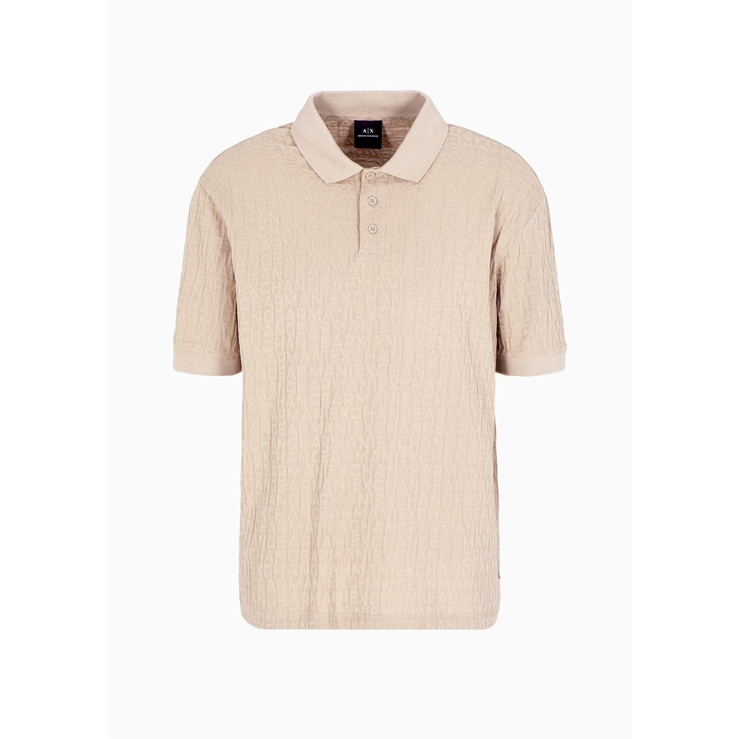 This Armani Exchange polo shirt from the semi-formal collection offers a regular fit with short sleeves. Featuring an all-over logo pattern, it includes a polo collar and a button closure for a classic look. The ribbed cuffs add a touch of detail, making it a stylish choice for any occasion. -