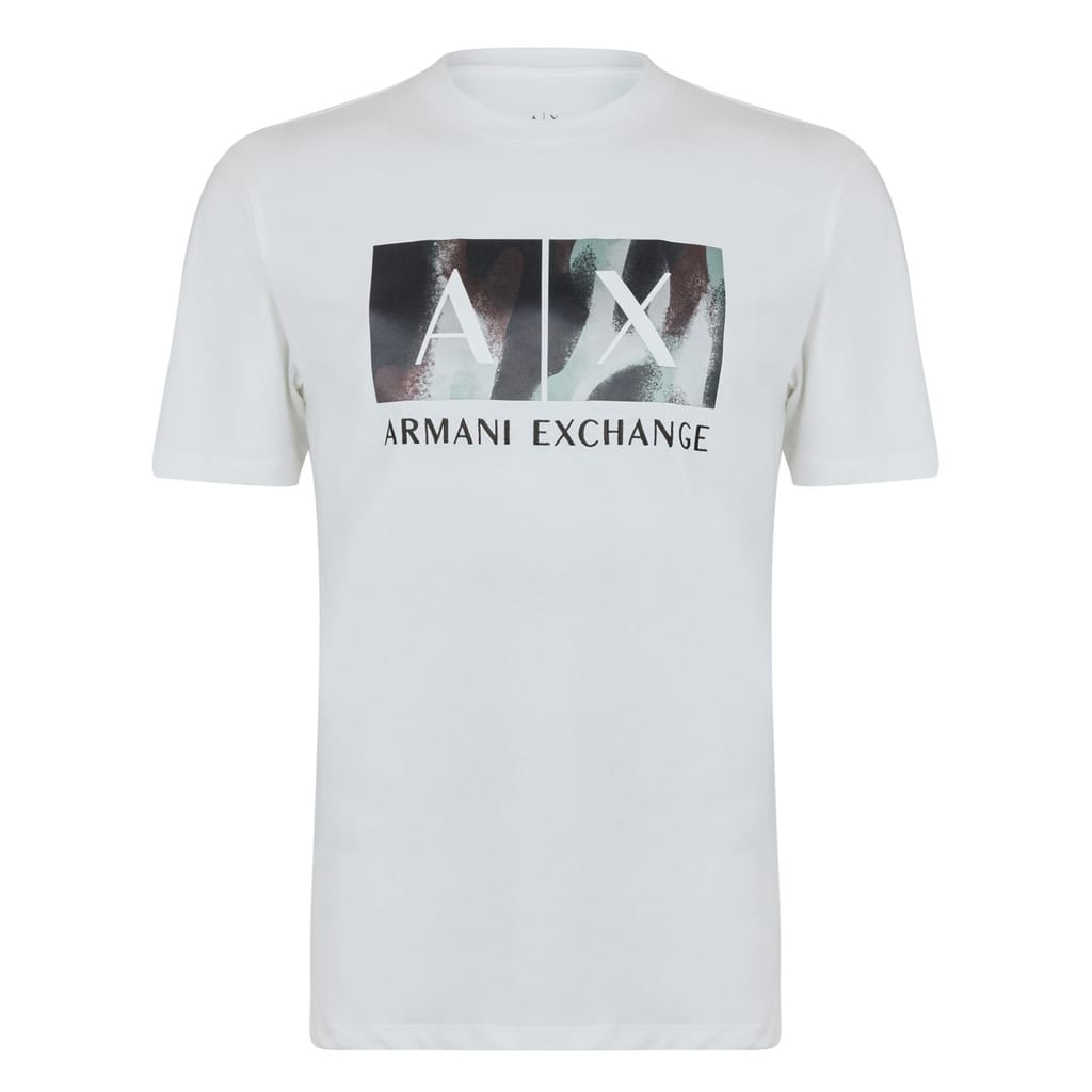 The Armani Exchange t-shirt is perfect for a casual look. Featuring a camo pattern and a crew neck, this regular fit top is designed for comfort. The short sleeves add to its relaxed style, while the logo embellishment gives it a distinct touch. -