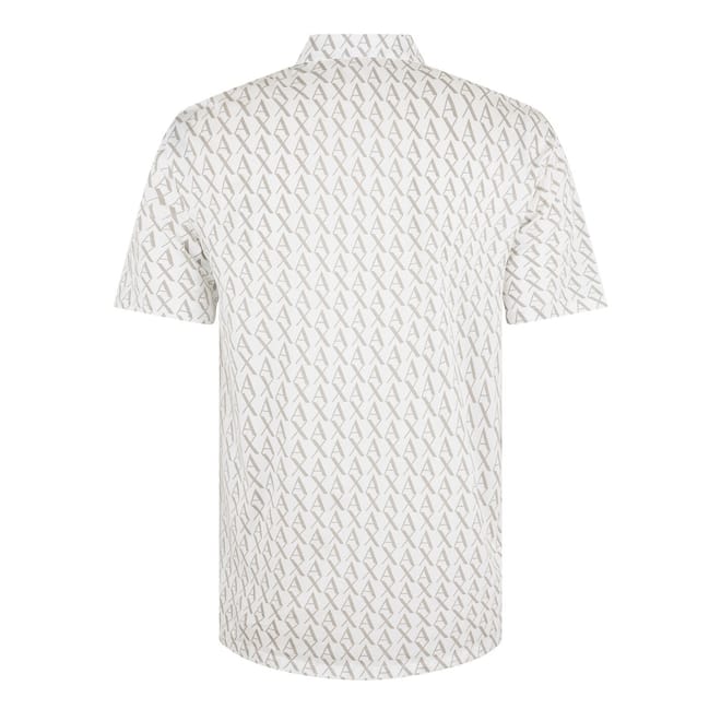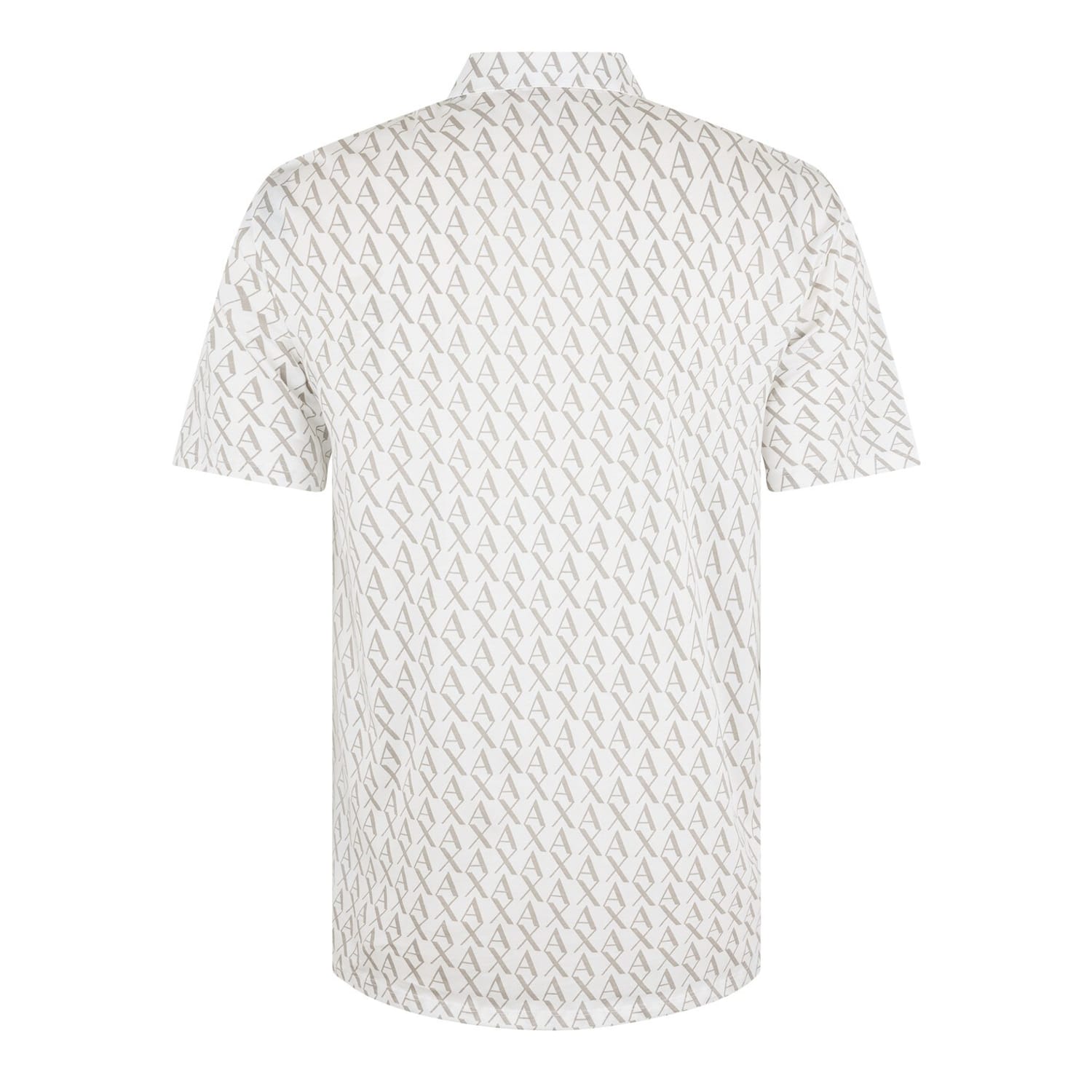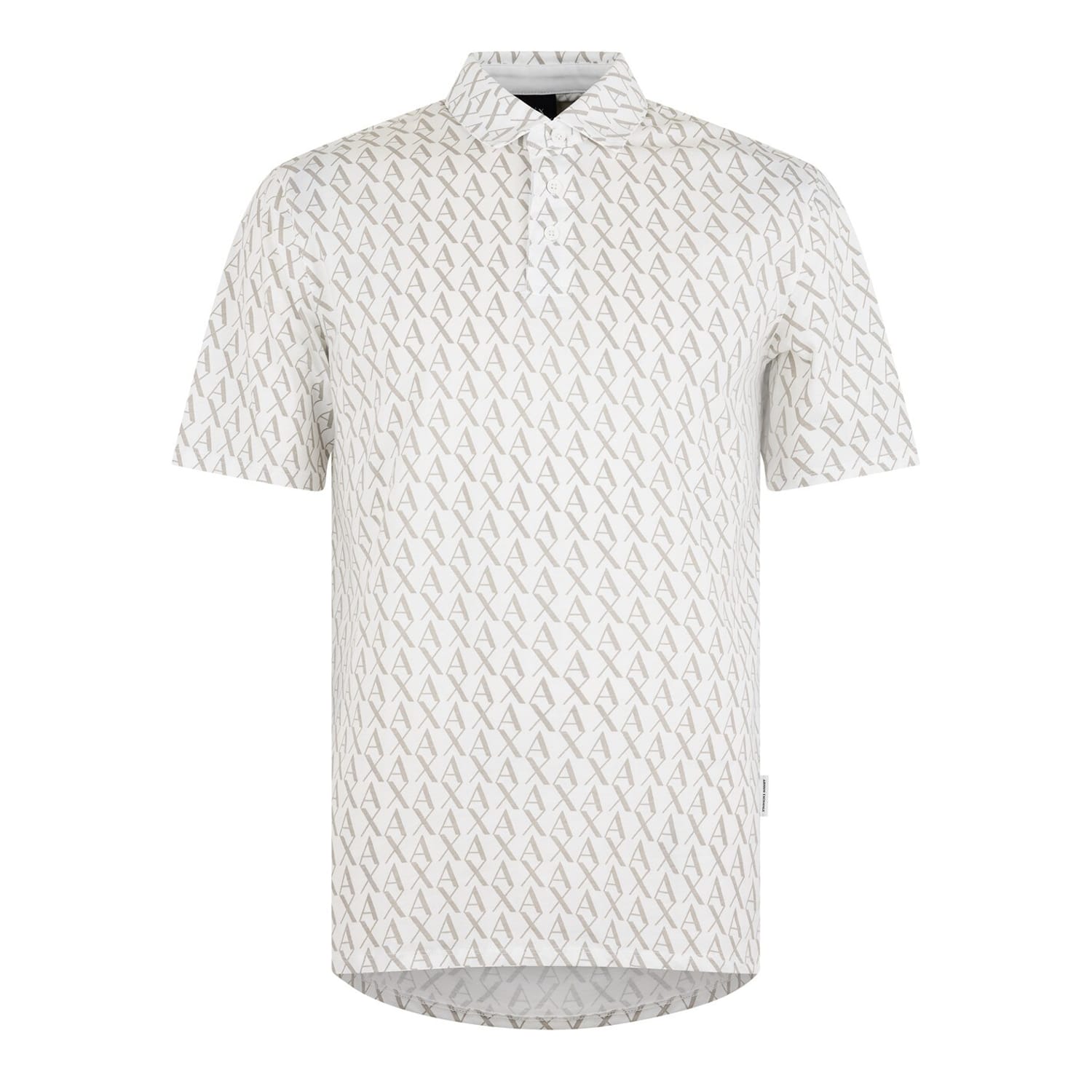 This Armani Exchange polo shirt showcases a stylish all-over logo pattern. Designed with short sleeves and a polo collar, it comes with a button closure for a semi-formal appeal. The regular fit ensures comfort and a timeless look, making it a versatile addition to any wardrobe. -