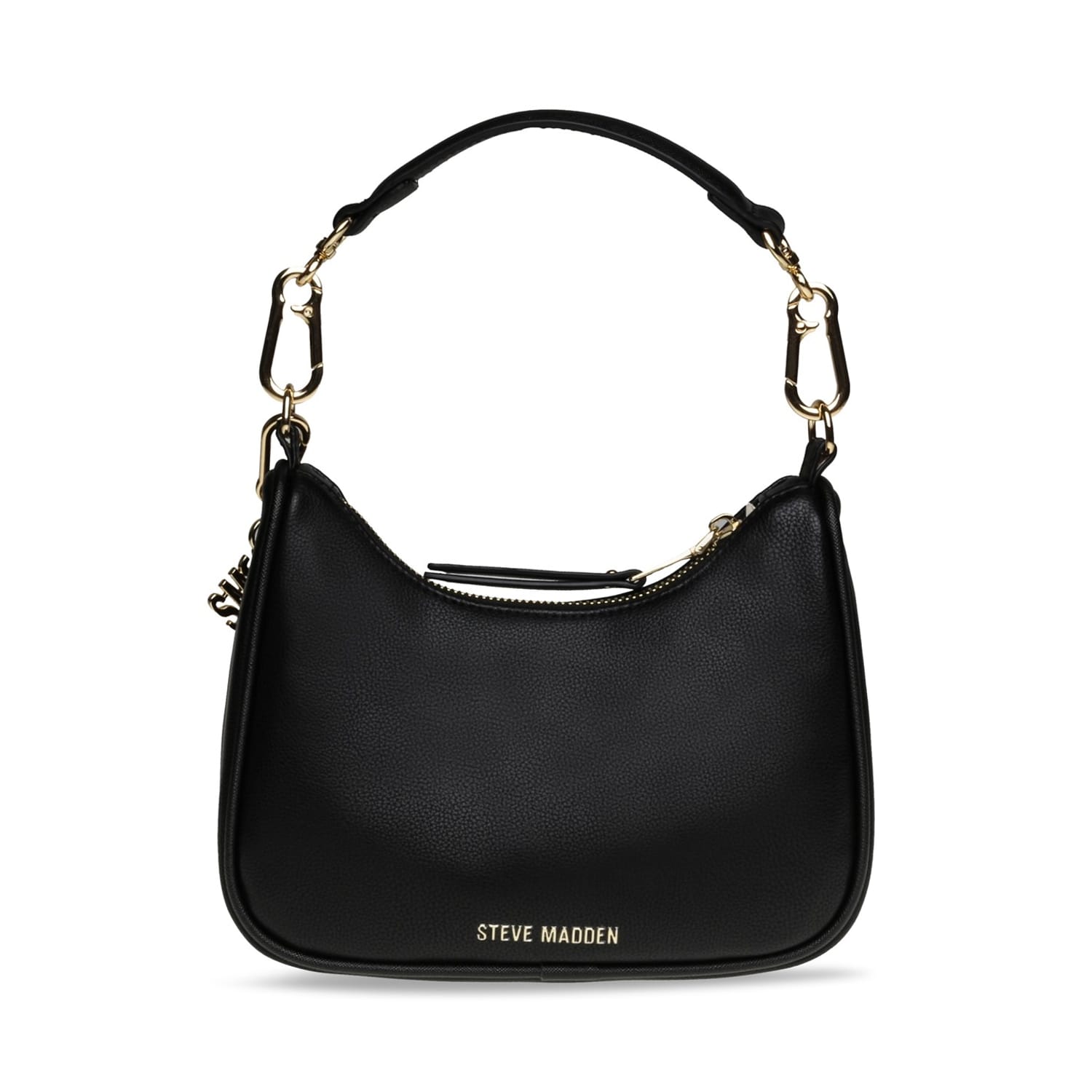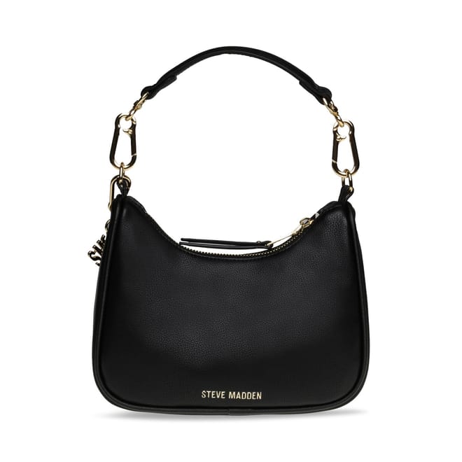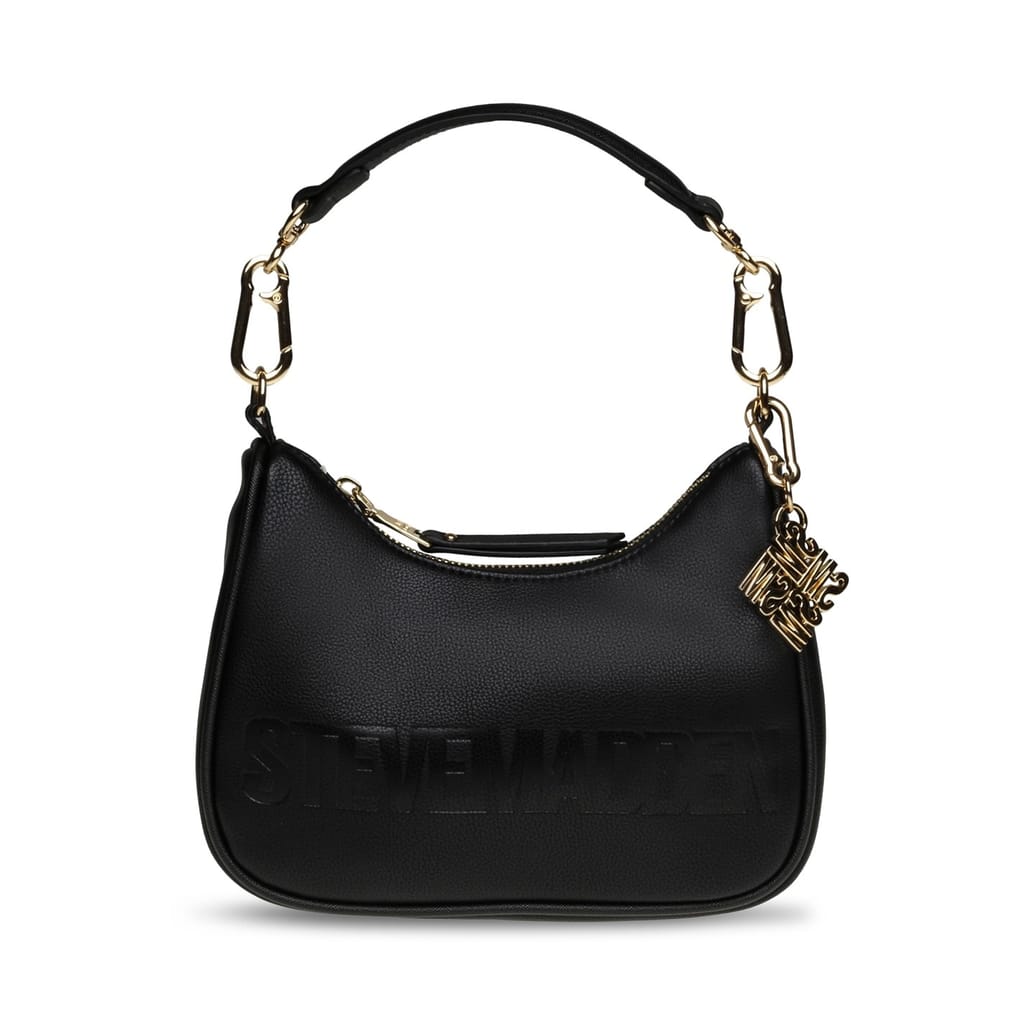 Discover the Steve Madden hobo bag, a stylish accessory featuring a zipper closure for secure storage. This shoulder bag is adorned with a logo, chain, and charm embellishments, adding a touch of elegance to its design. Perfect for those who appreciate both functionality and fashion in their everyday essentials. -