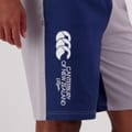 These Canterbury athletic shorts feature a stylish color block pattern, perfect for active pursuits. Designed with a drawstring closure for a secure fit, they offer both comfort and functionality. The iconic logo embellishment adds a touch of brand recognition, making these shorts a practical choice for sports enthusiasts. -