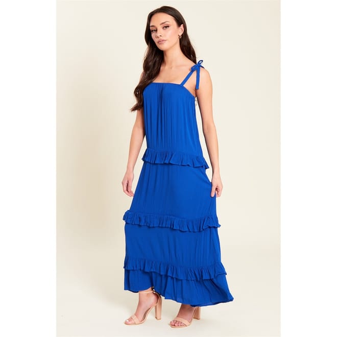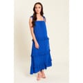 The Be you midi dress features a tiered design with a solid pattern. This dress showcases crinkle embellishments and delicate ruffles, adding a touch of sophistication and texture. Ideal for various occasions, it effortlessly combines style and elegance. -