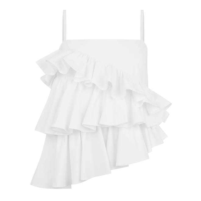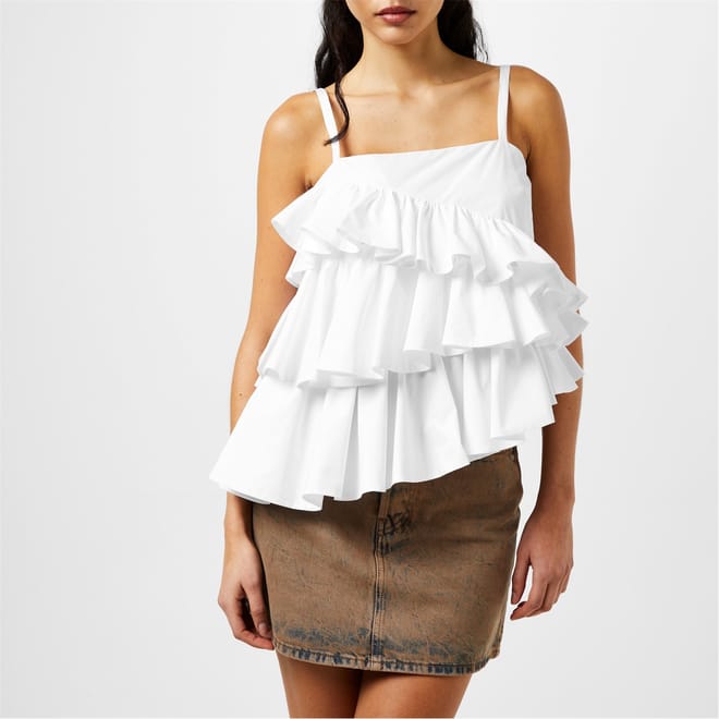 Discover the chic MSGM sleeveless tank top. This camisole features a stylish square neck and delicate spaghetti straps, complemented by ruffle embellishments for a touch of elegance. Perfect for those seeking a blend of contemporary design and comfortable wear. -