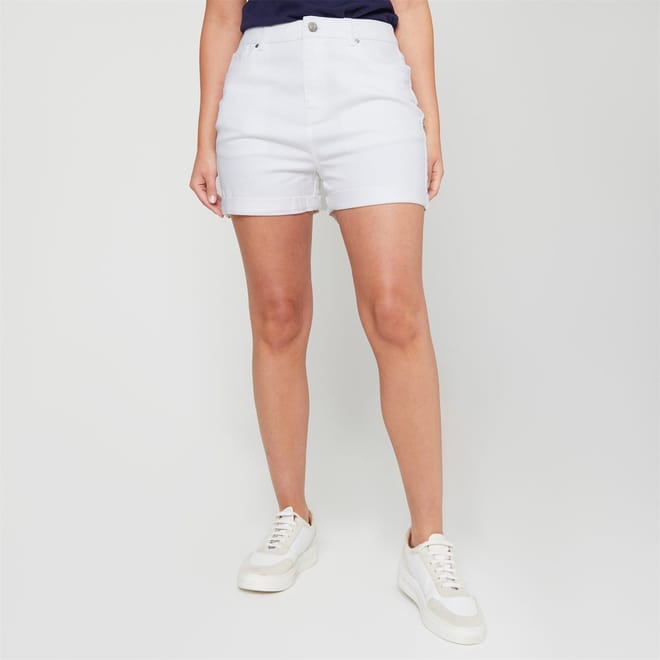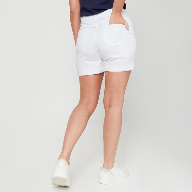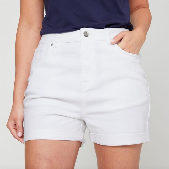 Be You solid jean shorts feature a zip fly and button closure, offering a casual style. These shorts are designed with practical pockets, making them a versatile addition to your wardrobe. -