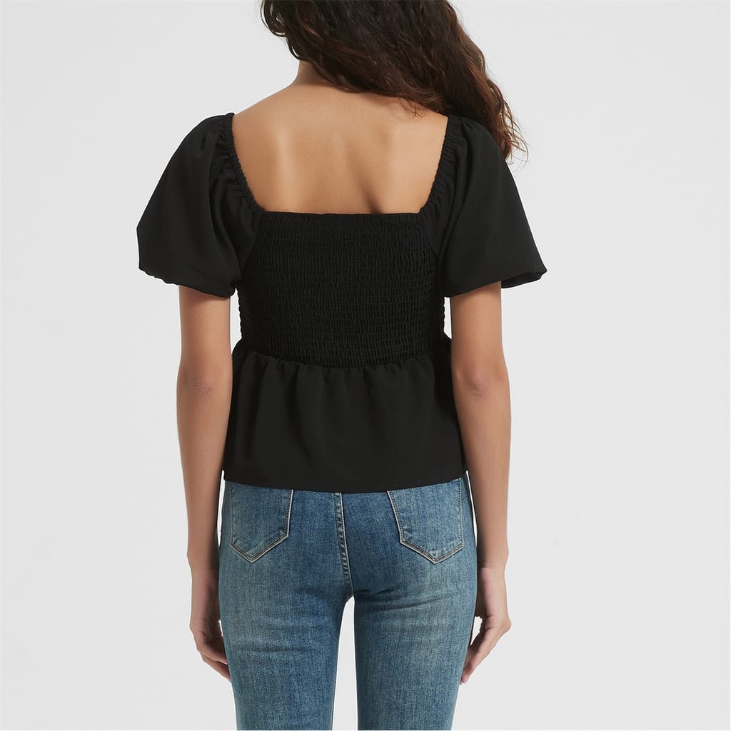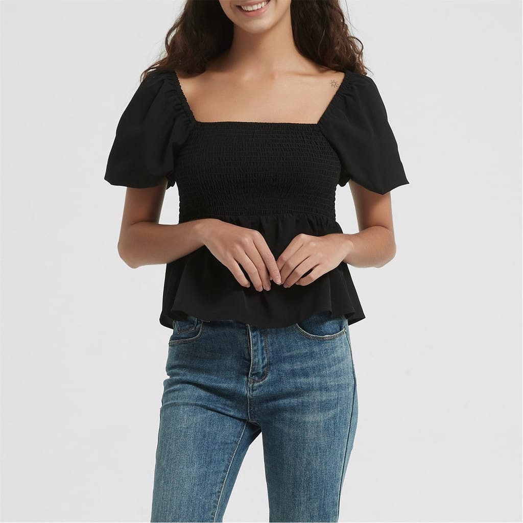 Enhance your wardrobe with this stylish Be You blouse, featuring a square neck and puff sleeves. This short sleeve top offers a regular fit, perfect for any occasion. The solid pattern adds a touch of elegance, while the zipper closure ensures easy wear. Ideal for those seeking a versatile and chic addition to their collection. -