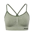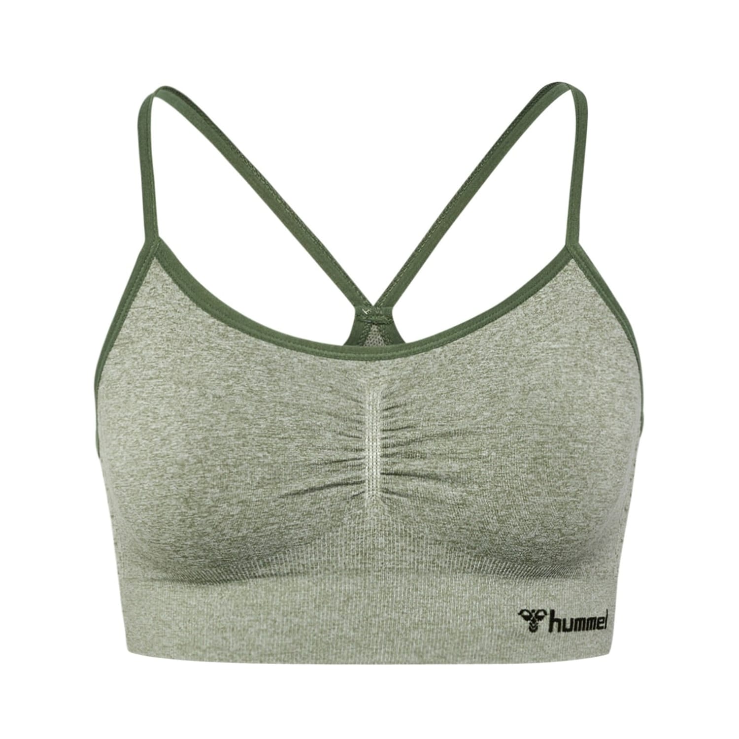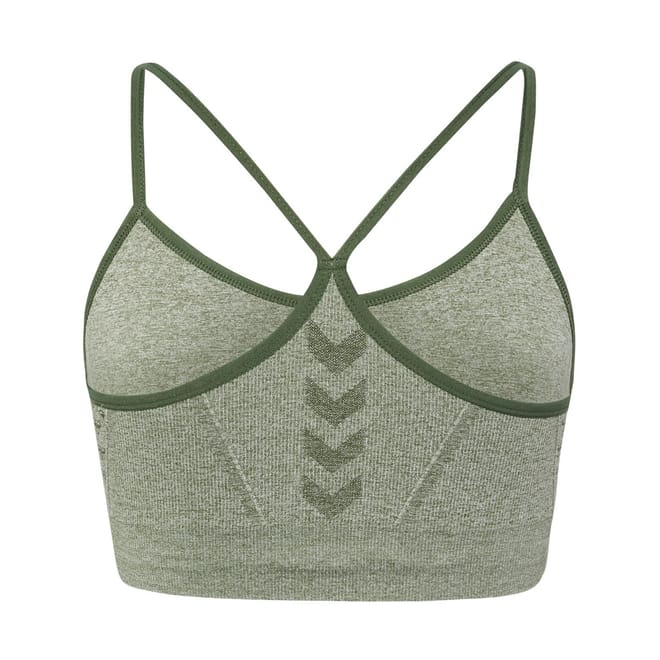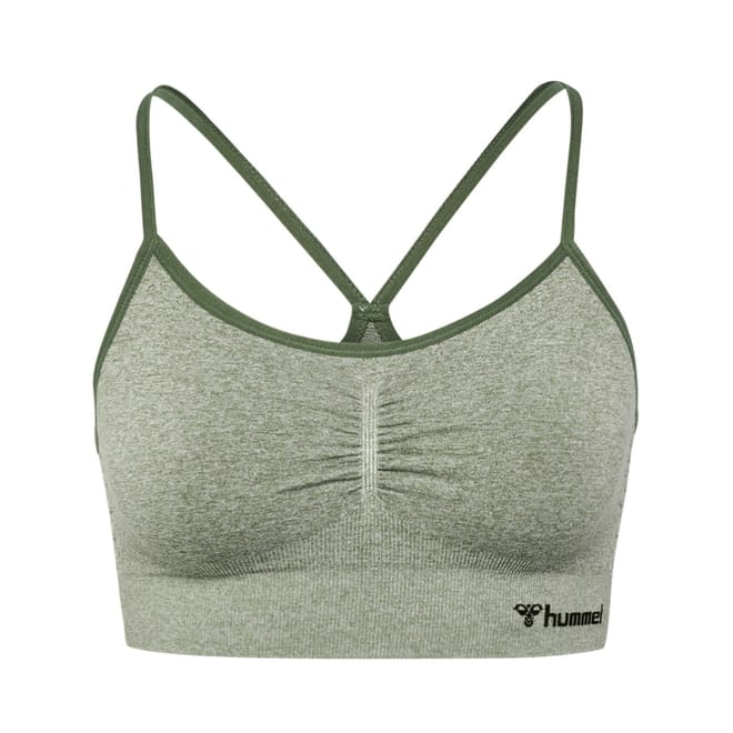 This hummel sports bra is designed for comfort and support with its compression fit and sleeveless spaghetti strap design. Featuring a heathered pattern, it is ideal for sporting activities. The cropped length ensures a modern look while providing the perfect fit for active individuals. -