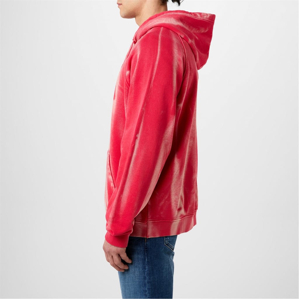 Diesel presents this Washed Logo Hoodie: a daring take on a modern classic. Crafted from a soft cotton jersey, this men's sweatshirt showcases a classic hood with a drawstring fastening, allowing you to customize your fit. Framed by long sleeves that provide that warmth on chilly days, the kangaroo pocket on the front ensures space for everyday essentials. The ribbed cuffs and hem offer freedom of movement and comfort.