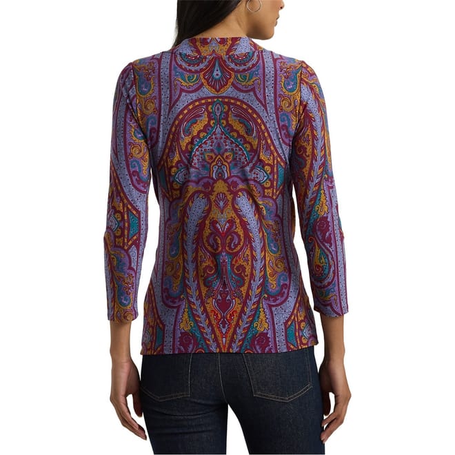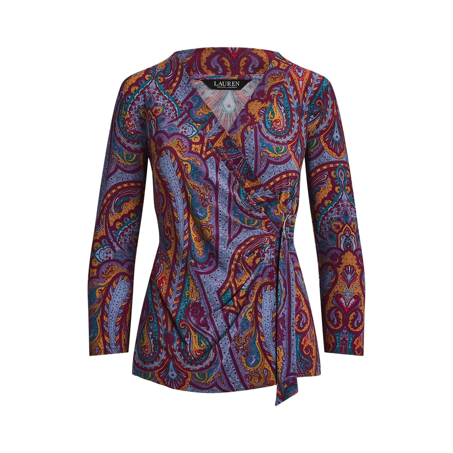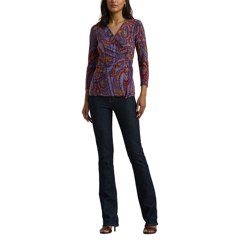 Step into the world of Lauren by Ralph Lauren and discover the epitome of accessible luxury with the Jainab Wrap Top. Crafted from a blend of polyester and elastane, this top is designed for both style and comfort. With three-quarter-length sleeves, you can wear it comfortably from season to season. The crossed v-neckline and wrap-effect yoke with ties to tie on the left waist captivate attention, while the subtle ruffles on the left side of the waist add a touch of flair. Featuring a metal D-ring, engraved with the LRL monogram, providing a luxurious detail that pays tribute to the brand's rich heritage.