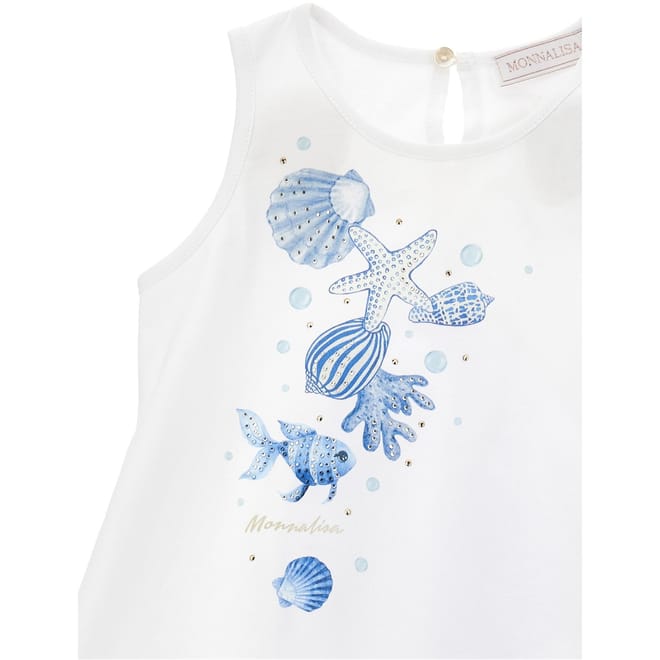 This Monnalisa sleeveless t-shirt is perfect for casual outings. Featuring a crew neck and a graphic print, it offers a comfortable regular fit. Ideal for adding a stylish touch to your everyday wardrobe. -