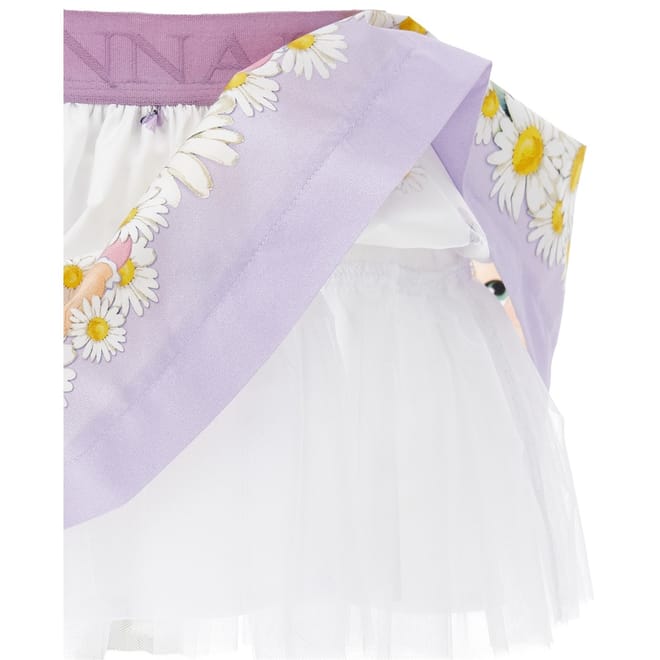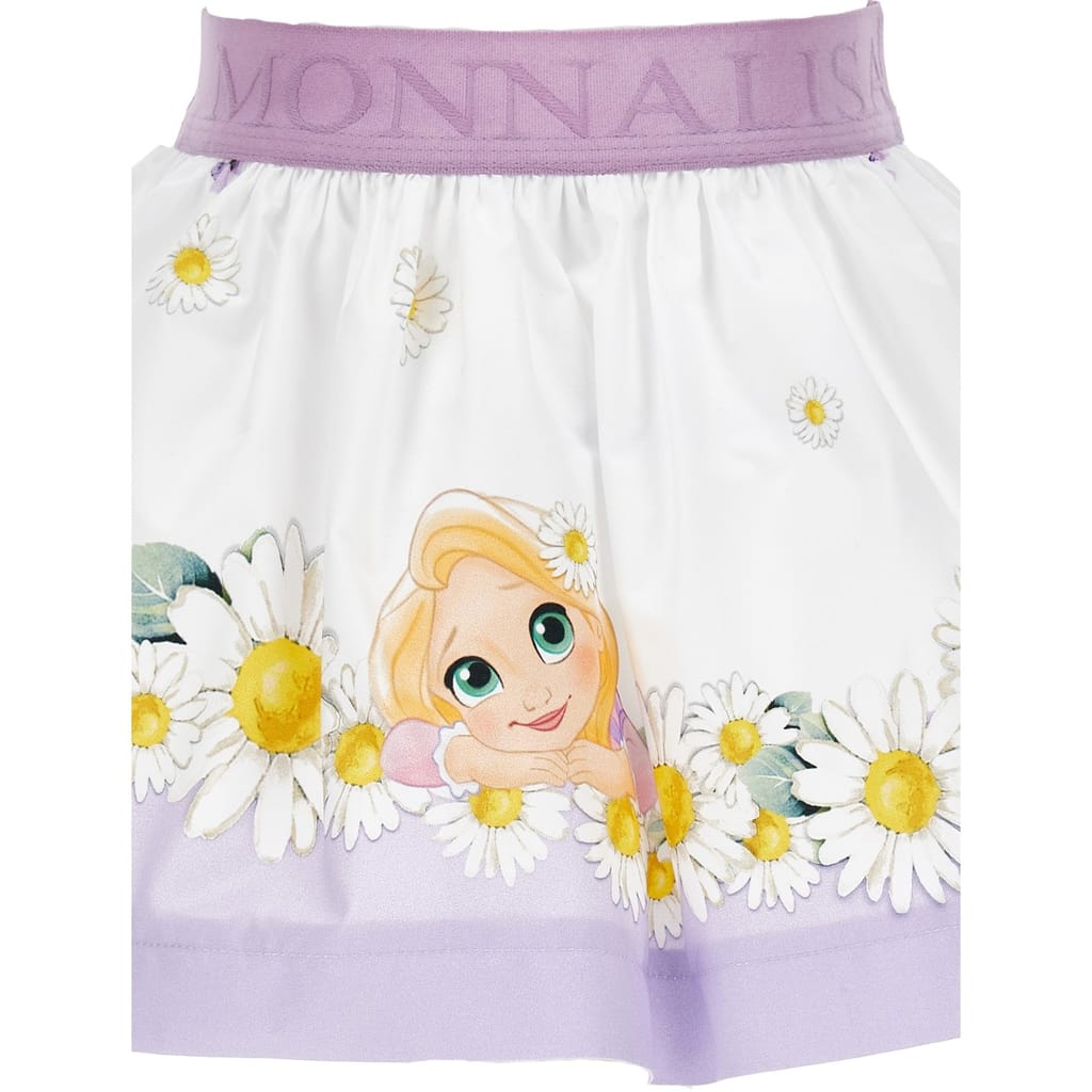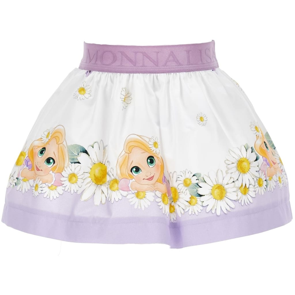 Renowned for their luxury childrenswear, Monnalisa understands exquisite elegance, expertly presented in this Cotton Disney Skirt, a true depiction of timeless elegance and the magic of Disney's Tangled. Fit for a princess, this lovely white and purple skirt from Monnalisa is a dream come true. Expertly woven in lightweight cotton, this skirt offers a soft and breathable feel, ensuring comfort throughout the day. Its voile lining adds an extra layer of indulgence, while the stretchy jacquard logo waistband provides a perfect fit for your little princess.
